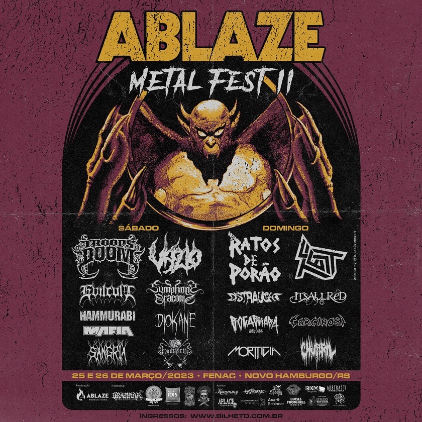 Venda Online: https://www.bilheto.com.br/evento/989/2_Ablaze_Metal_Fest
