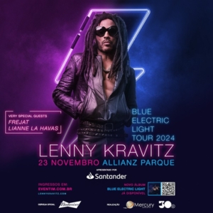 Escritor, produtor, multi-instrumentista vencedor de quatro prêmios GRAMMY®, Lenny Kravitz traz para São Paulo a turnê mundial Blue Electric Light Tour 2024, que já passou por Alemanha, Noruega, Bélgica, França, Itália, Suíça e Grécia, além de cinco datas em Las Vegas, com apresentações avaliadas como um retorno surpreendentemente maduro, versátil e de afirmação da vida. O artista tem passagem confirmada pelo Brasil no dia 23 de novembro, no Allianz Parque, em São Paulo. Em uma coprodução da 30e e Mercury Concerts, apresentado pelo Santander Brasil e com patrocínio da Budweiser, o espetáculo terá duas duas atrações de abertura: Lianne La Havas e Frejat. Os ingressos estão disponíveis no site da Eventim.