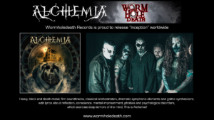 “Inception” foi lançado no mercado brasileiro no dia 31 de outubro de 2020 pela Shinigami Records em parceria com o selo Dark Inc., responsável pelo lançamento nas plataformas digitais que, a partir de agora, será feito pelo selo italiano através da The Orchard. O material foi gravado nos estúdios Fusão e Carbonos, com produção de Piiroja, em colaboração com Ricardo Campos (Sunseth Midnight), que produziu os vocais. “Temos muitas influências em ‘Inception’, desde heavy metal, black metal, death metal, trilhas de filmes e orquestração clássica. Ao mesmo tempo, ele apresenta identidade própria“, observou Piiroja, idealizador do projeto. “O interessante da Wormholedeath é que o selo é focado em diversas vertentes, muitas das quais o Alchemia se encaixa“, acrescentou.
