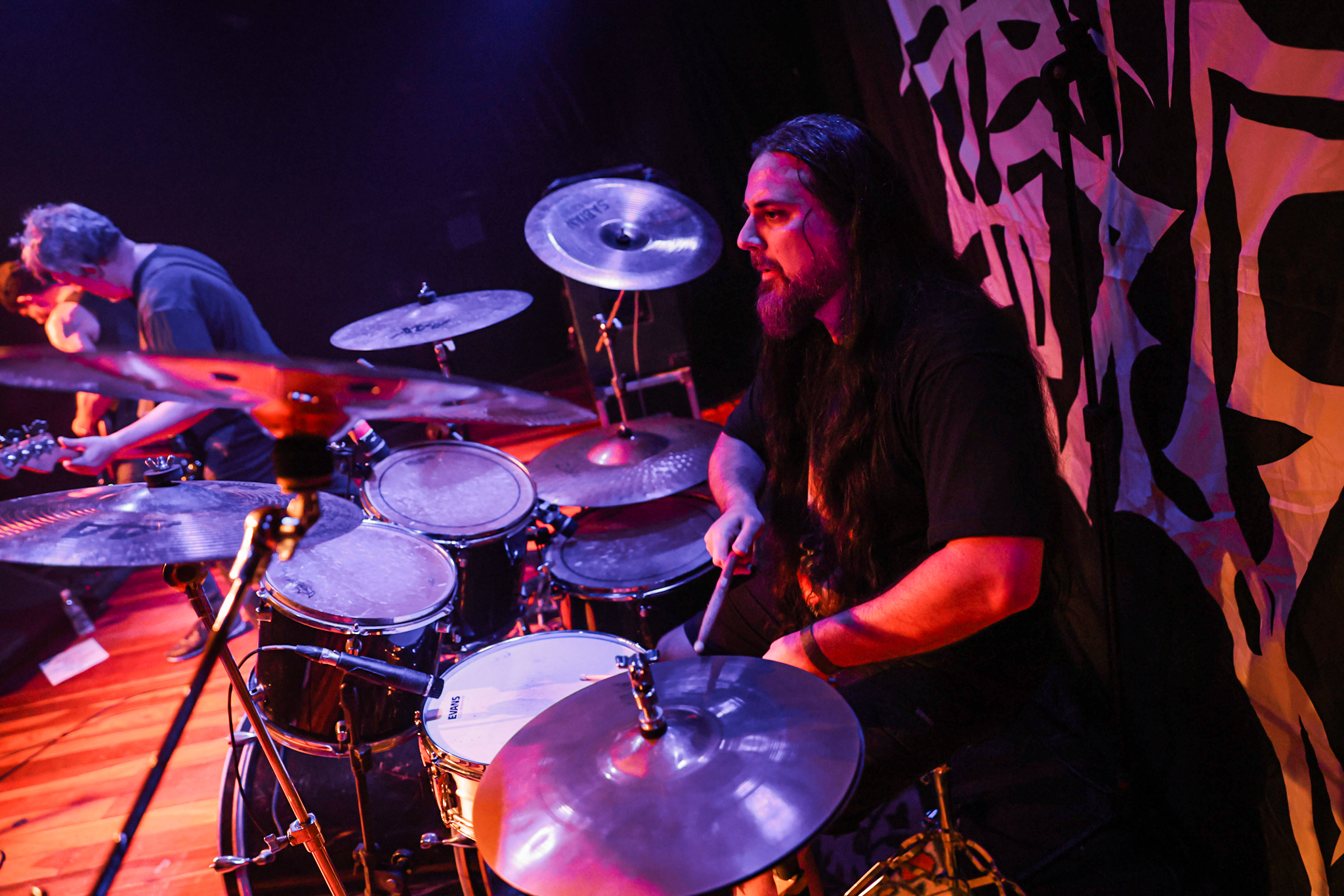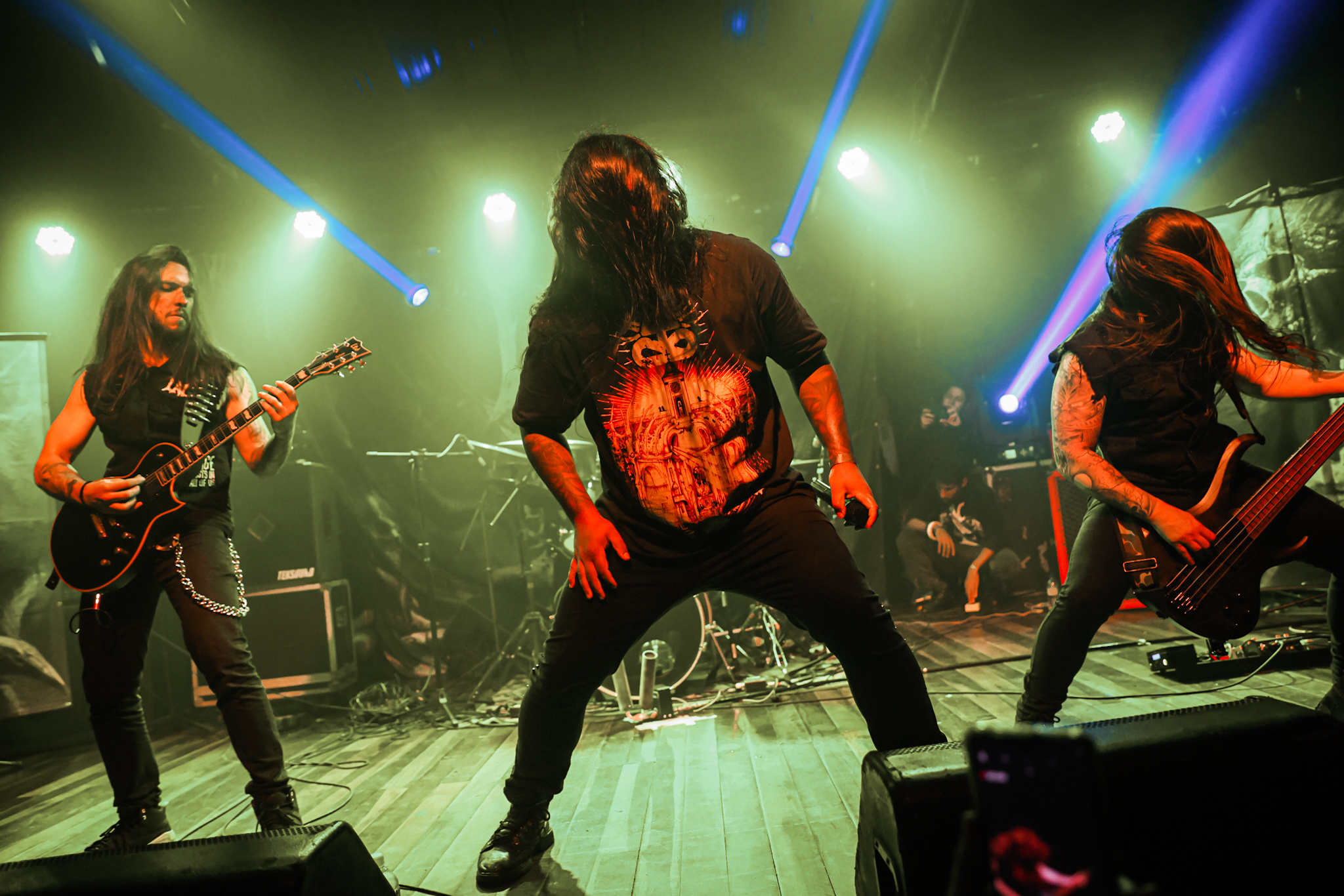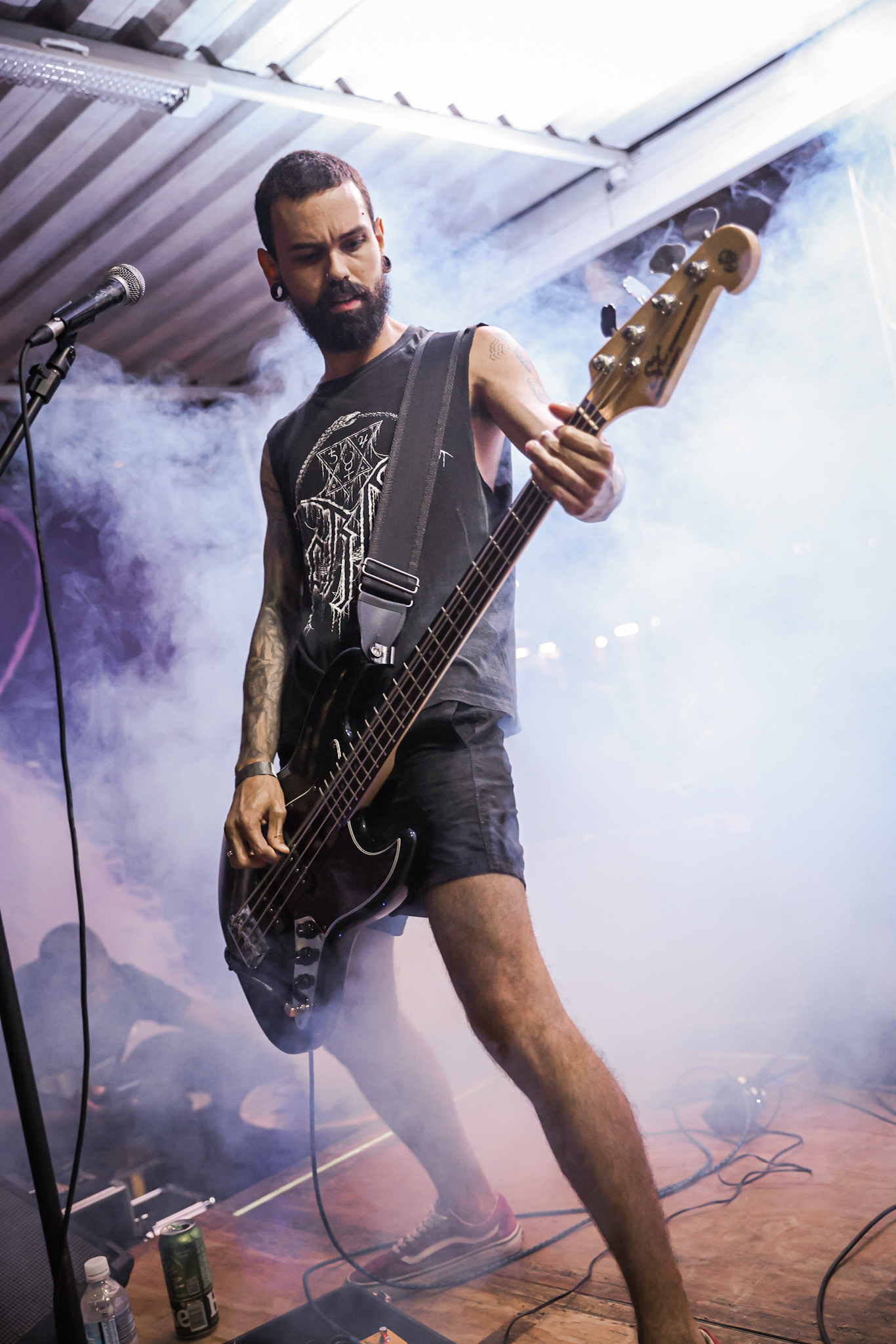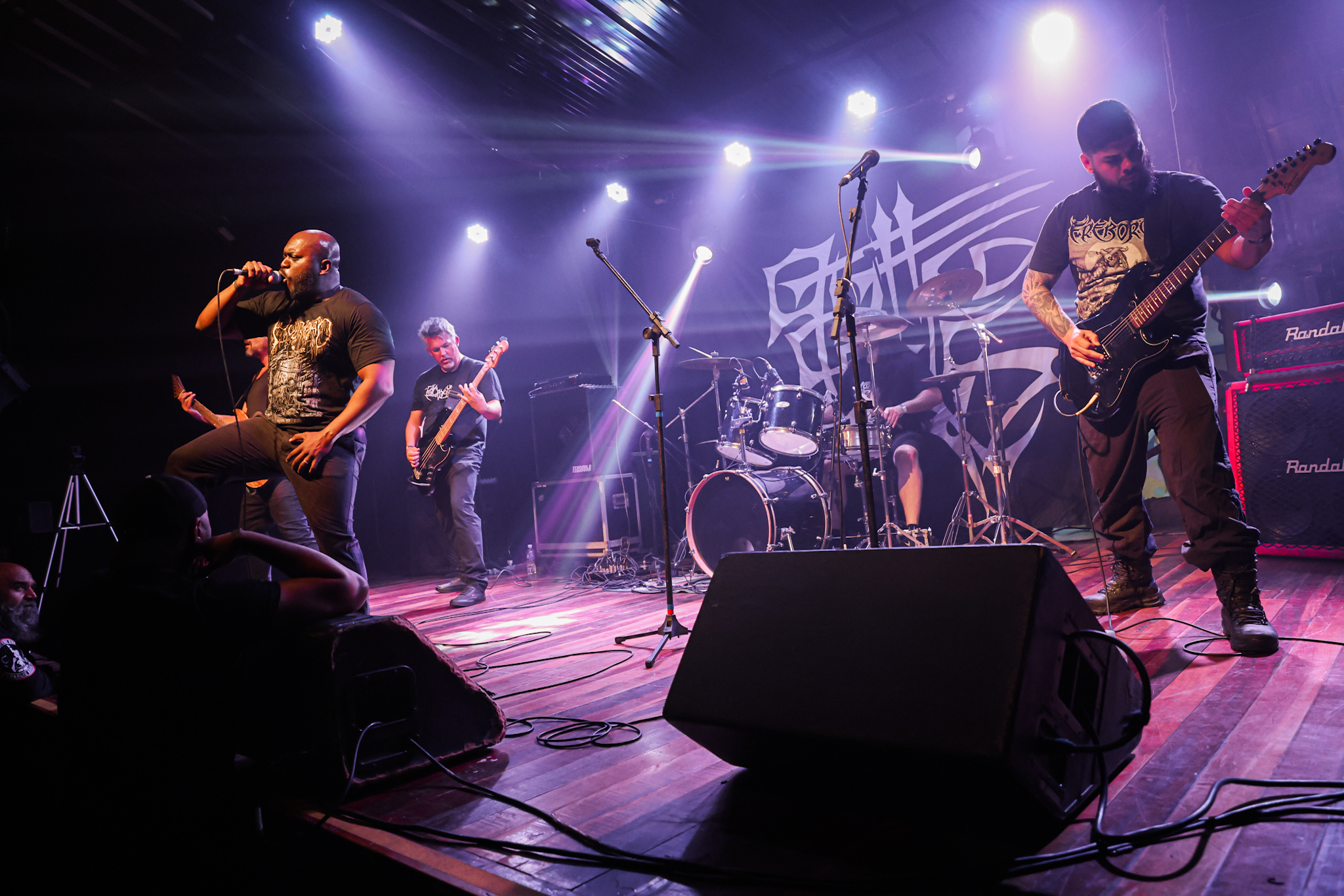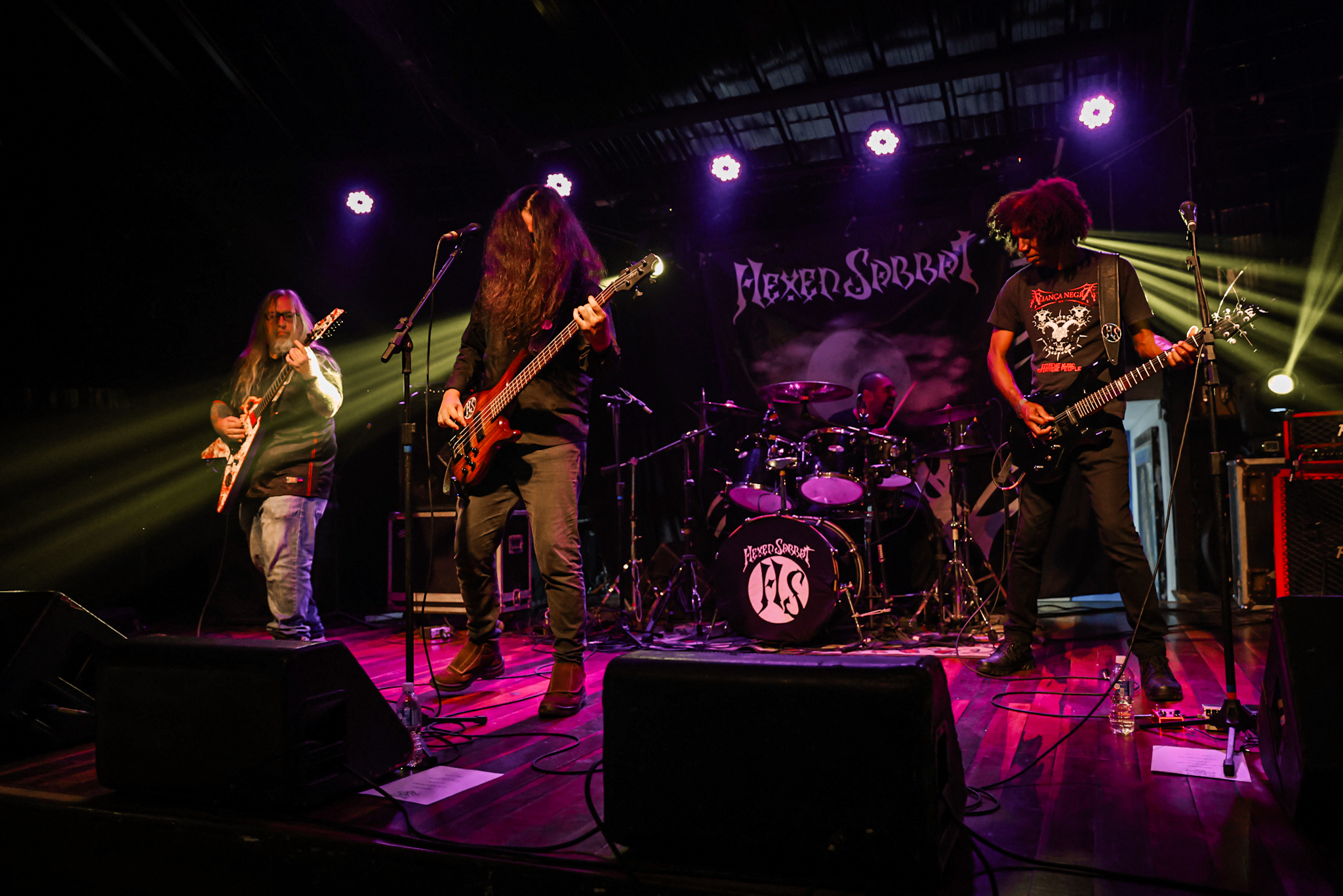 Sabendo desses horários, ao chegarmos na casa, por volta de 18:40, vimos o Austera, banda formada por Pedrito Hildebrando (vocal/baixo) e Luiz Mallet (guitarra), ambos ex-membros de uma das maiores e melhores bandas do Black Metal Carioca, Vociferatus. Ismael (bateria) completa a formação da banda e foi uma ótima chegada, pois o Hardcore deles, no qual flerta muito com o Black Metal mais atmosférico, tendo passagens belíssimas e altamente atmosféricas, somadas a um caos monstruoso com a violência do seu Hardcore. Que lindo cartão de visitas ao evento!