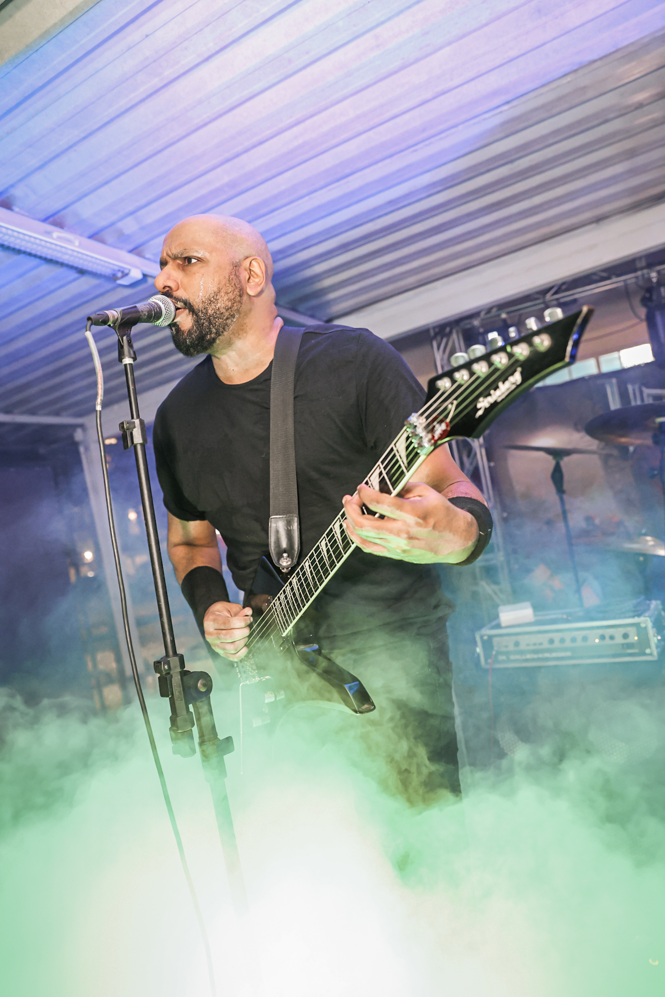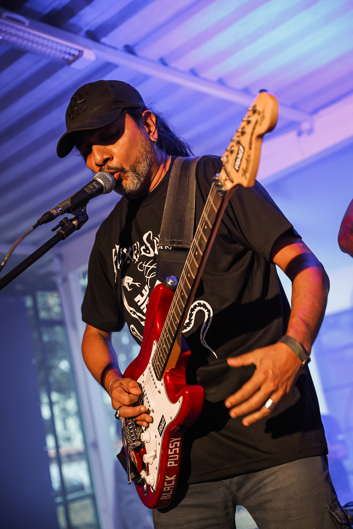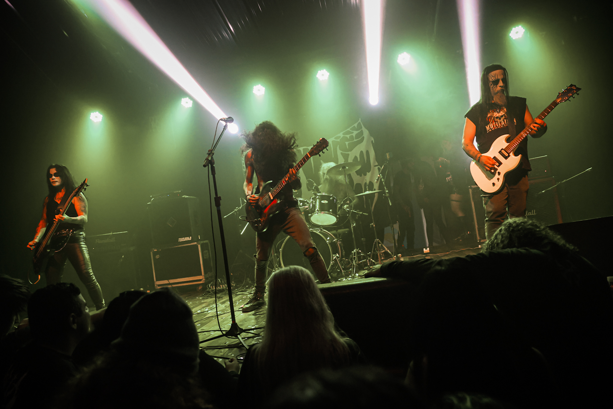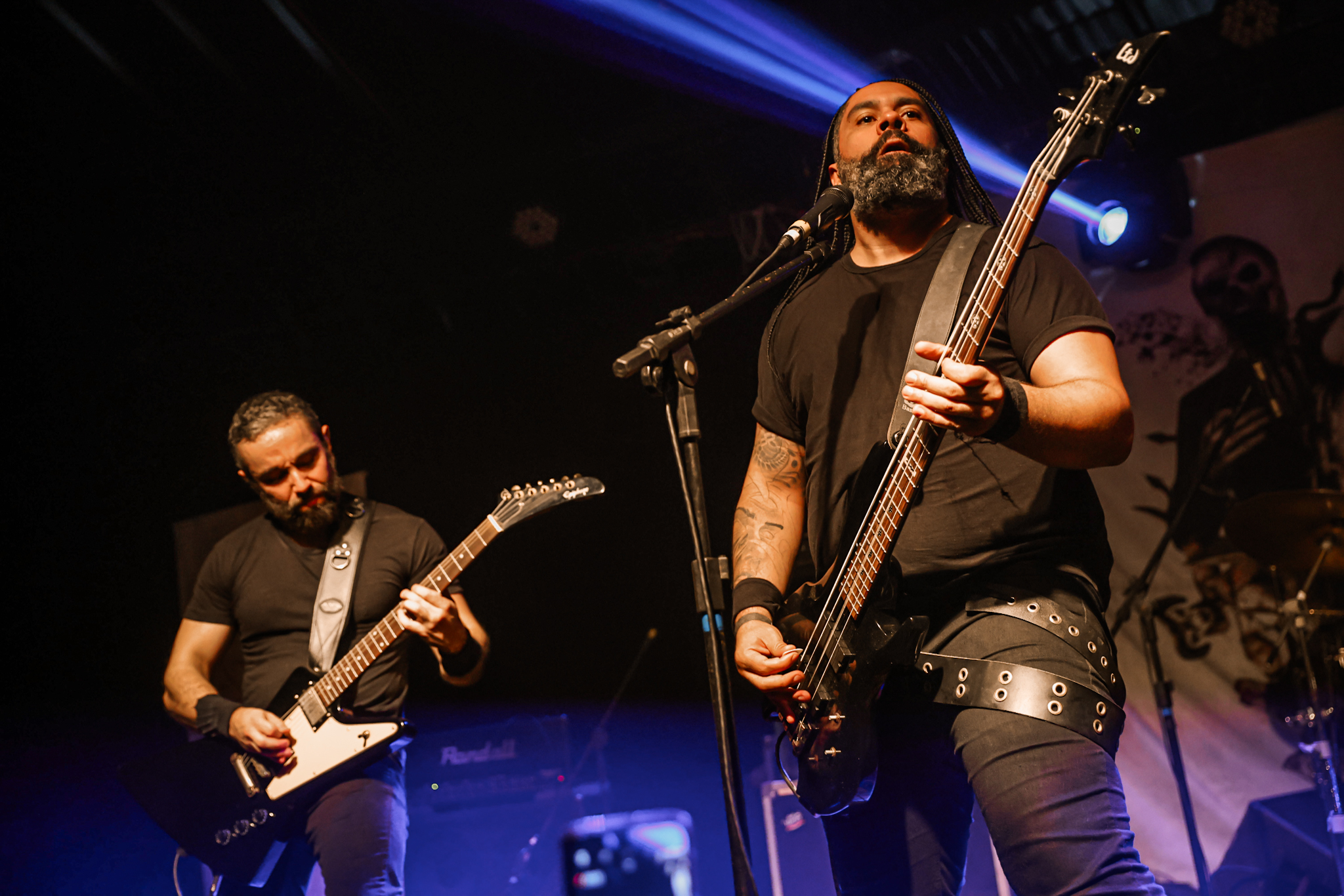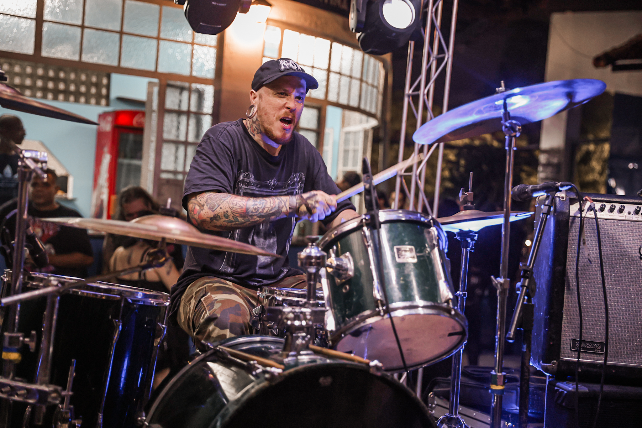 Sabendo desses horários, ao chegarmos na casa, por volta de 18:40, vimos o Austera, banda formada por Pedrito Hildebrando (vocal/baixo) e Luiz Mallet (guitarra), ambos ex-membros de uma das maiores e melhores bandas do Black Metal Carioca, Vociferatus. Ismael (bateria) completa a formação da banda e foi uma ótima chegada, pois o Hardcore deles, no qual flerta muito com o Black Metal mais atmosférico, tendo passagens belíssimas e altamente atmosféricas, somadas a um caos monstruoso com a violência do seu Hardcore. Que lindo cartão de visitas ao evento!