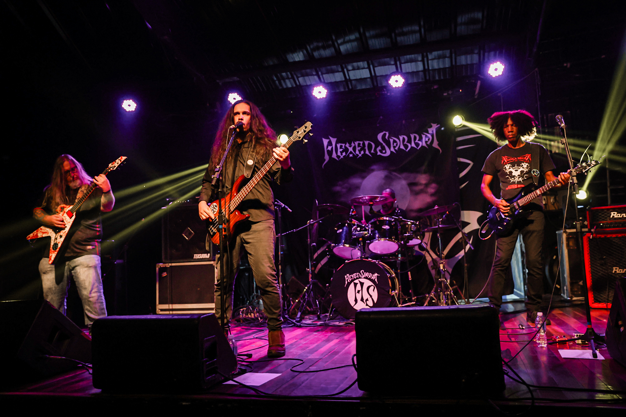 Fechando o palco 2, iriamos ter o Vox Mortem, banda essa que, mesmo depois de ter mudado um pouco de formação, que agora conta com Jean Rezende e Esaú Xavier(guitarras), Rafael Leone (baixo e vocal) e Flávio Monteiro (bateria) apresentaram um som, calcado no seu Thrash Metal que tem o jeito clássico, mas eu diria, em termos mais simplórios, que a banda tem um “tempero a mais”, pois o som deles é muito certeiro e fez o pessoal curtir ainda mais o show. A banda focou a sua apresentação em suas composições já lançadas e ainda nos mostrou o que há por vir no próximo lançamento da banda, Duality e o apresentado muito agradou esse que vos fala. Maravilhosa a banda, grande apresentação.