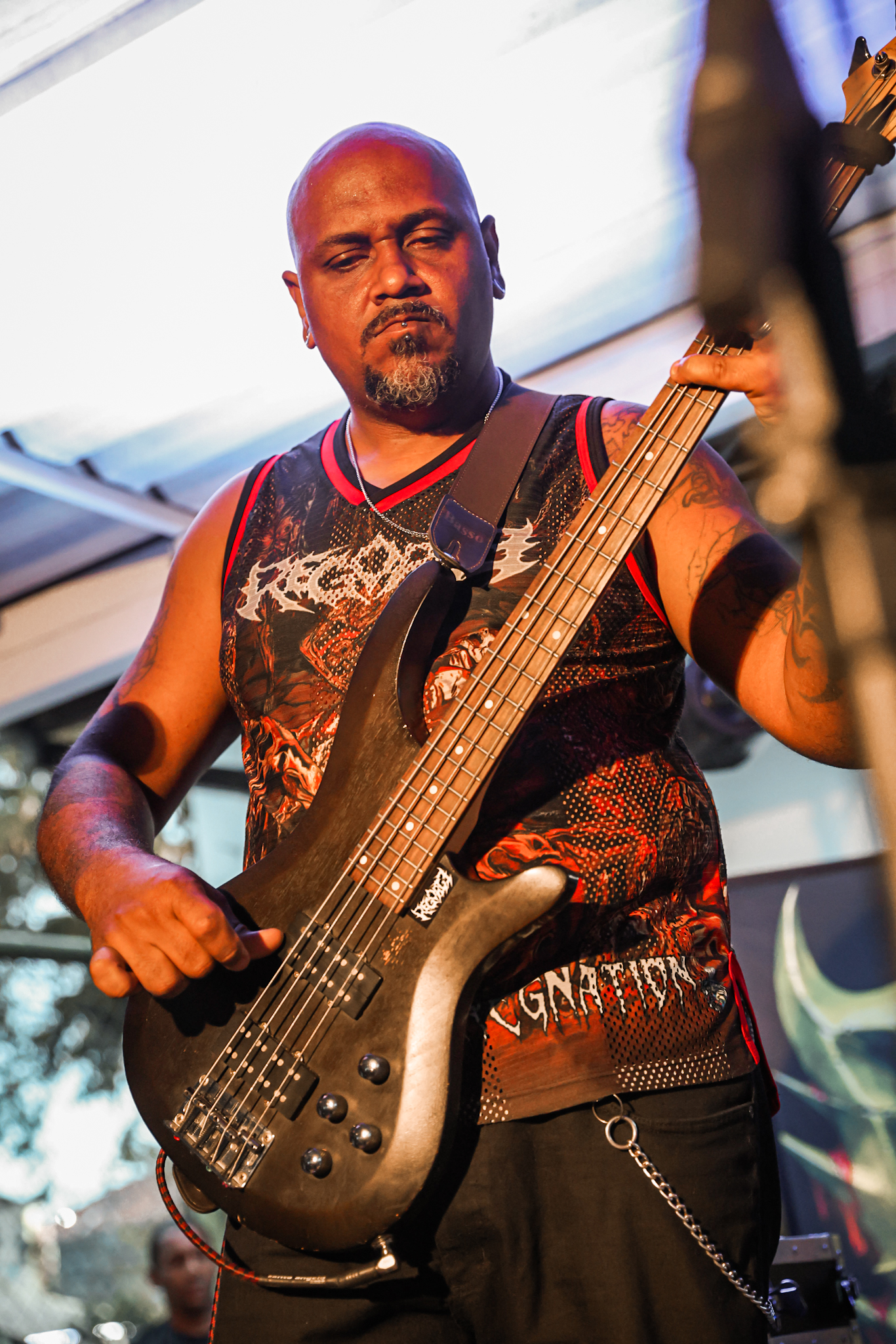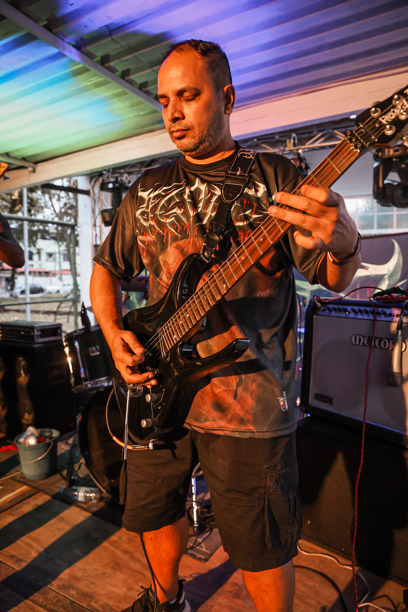 Voltando ao palco externo, eu iria presenciar uma das apresentasções mais incríveis no qual, aquele que frequenta o Underground Carioca, o Ágona entregou energia, qualidade e um peso descomunal, a banda que é formada por Alan Muniz (vocal), Leonardo Milli (guitarra), Rafael Ferraz (baixo) eTurko Ouriques (bateria) se apresenta de forma forte, pesada, com riffs precisos, o baixo fretless tocando muito alto e a bateria perfeita, mas, como sempre, o pequeno em tamanho, mas um colosso em palco, Alan Muniz é um vocalista exemplar, que é forte, é simplesmente impossível ver um show do Ágona e não se impressionar com a postura do vocalista em palco, impossível, ele vira um gigante, muito bom! A apresentação baseada nas canções oriundas do Antropo e do Essencial Putrefação foi incrível, ainda lançaram uma nova música no festival, eles foram incríveis.