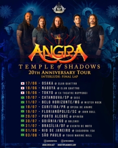 Depois de um ano épico com turnês extensas e lançamentos históricos, incluindo um novo registro acústico e o relançamento do icônico Temple of Shadows, o Angra anuncia a etapa final da Temple of Shadows 20th Anniversary Tour. Os ingressos para todas as praças estão disponíveis na Bilheto e IngressosRock.com.br.