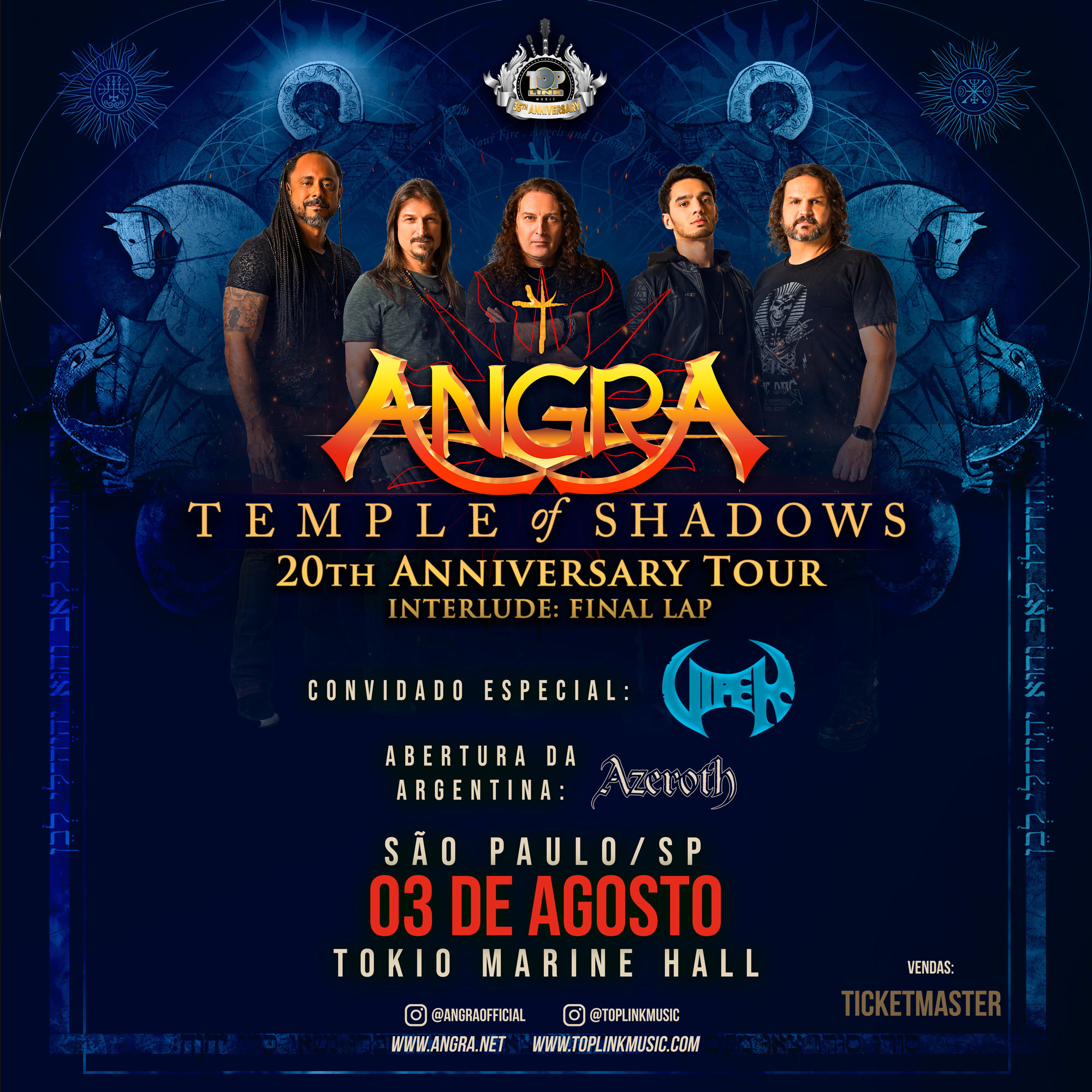 O Angra conclui a turnê “Temple of Shadows 20th Anniversary Tour – Interlude: Final Lap” com o que será o último show antes de entrar em um hiato divulgado previamente. O encontro acontece em São Paulo, no dia 3 de agosto, no Tokio Marine Hall, em uma noite que promete marcar tanto o fim de um ciclo quanto uma despedida temporária, repleta de emoção, técnica apurada e energia intensa.