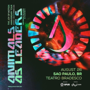 Aclamada como uma das bandas mais inovadoras do Metal Progressivo Contemporâneo, o Animals as Leaders está de volta ao Brasil para única apresentação no país. O show acontece no dia 26 de agosto, no Teatro Bradesco, em São Paulo, e faz parte da turnê mundial comemorativa aos 10 anos de lançamento do clássico álbum The Joy of Motion (2014), que será executado na íntegra pela primeira vez em solo nacional.