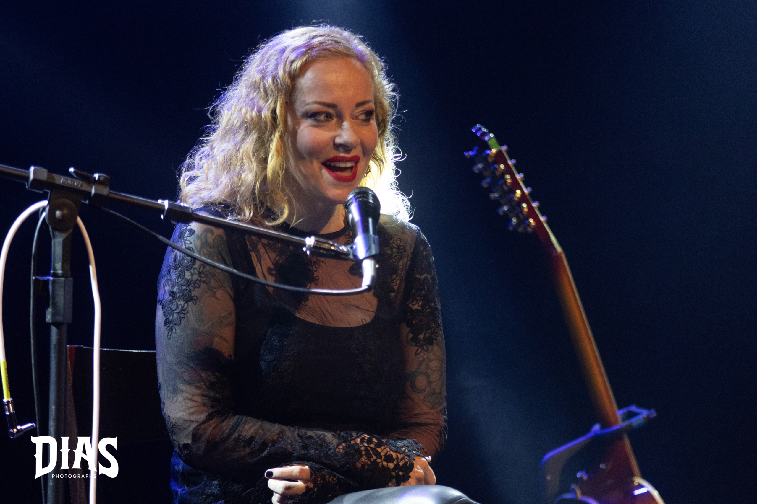 Ela começa o seu set conversando e sempre respondendo com muito bom humor o público, que é dela. Saturnine do The Gathering, foi executada ontem e foi simplesmente lindo!! Mas, linda como sempre, a simpática Anneke Van Giersbergen em mais momentos de conversa, risadas com o público dela, resolve tocar Ayreon, Valley Of The Greed, um momento maravilhoso, já que, vamos combinar, não é sempre que você ouve uma versão do Ayreon ao vivo e logo depois, ela resolve tocar I Saw A Car, do seu último disco, contando a história, que é super divertida e que a música é estranha (realmente é), mas a deixa feliz e ela esperava que nos deixasse feliz também. (Bem, ela conseguiu.),