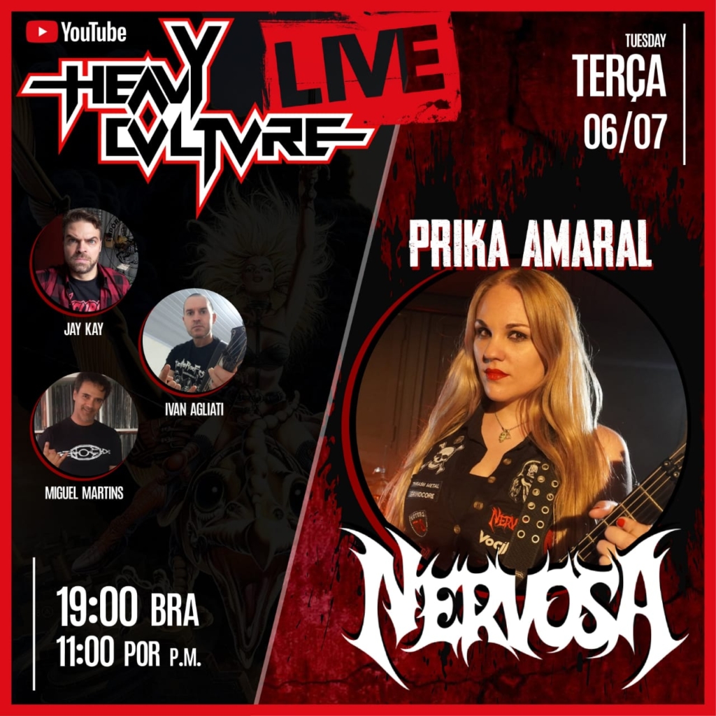 Para o mês de julho o staff preparou uma agenda de peso, iniciando com a banda Nervosa em papo com a guitarrista Prika Amaral em 06/07, seguindo com o MX dissecando o álbum “Simoniacal” em 09/07, e no dia 13/07 com o lendário Jeff Becerra, do Possessed. Já em 20/07 o HEAVY CULTURE receberá Max Cavalera, para falar principalmente sobre seu novo projeto, Go Ahead and Die, e finalizando, no da 27/07 será a vez do guitarrista Karl Sanders bater um papo sobre o Nile. Todas as lives serão realizadas às 19h.