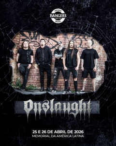 Onslaught: O Onslaught é uma das bandas mais influentes do thrash metal mundial e o principal nome do gênero no Reino Unido. Formado em 1982 pelo guitarrista Nige Rockett e pelo baixista Paul Hill, o grupo ganhou destaque internacional com os álbuns “Power From Hell” (1985) e “The Force” (1986), ambos lançados em vinil no Brasil. O impacto foi tão grande por aqui que Rockett relembra ter recebido muitas cartas de fãs brasileiros na época, destacando a conexão da banda com os fãs brasileiros.