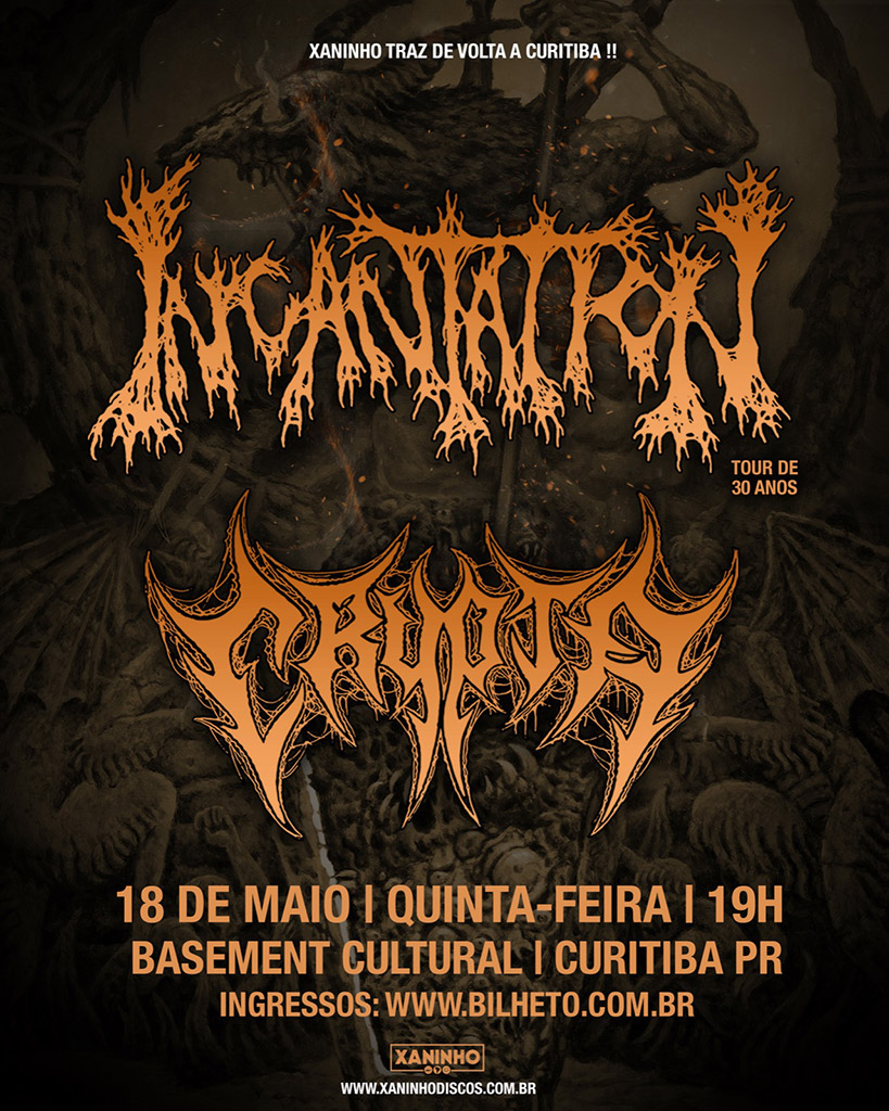 Com realização da Xaninho, Curitiba recebe a celebração de trinta anos de uma das grandes lendas do death metal mundial, o Incantation. O grupo americano é responsável por álbuns fundamentais do estilo, como Onward to Golgotha, Upon the Throne of Apocalypse e Diabolical Conquest. O mais recente trabalho é Sect of Vile Divinities, lançado em 2020.