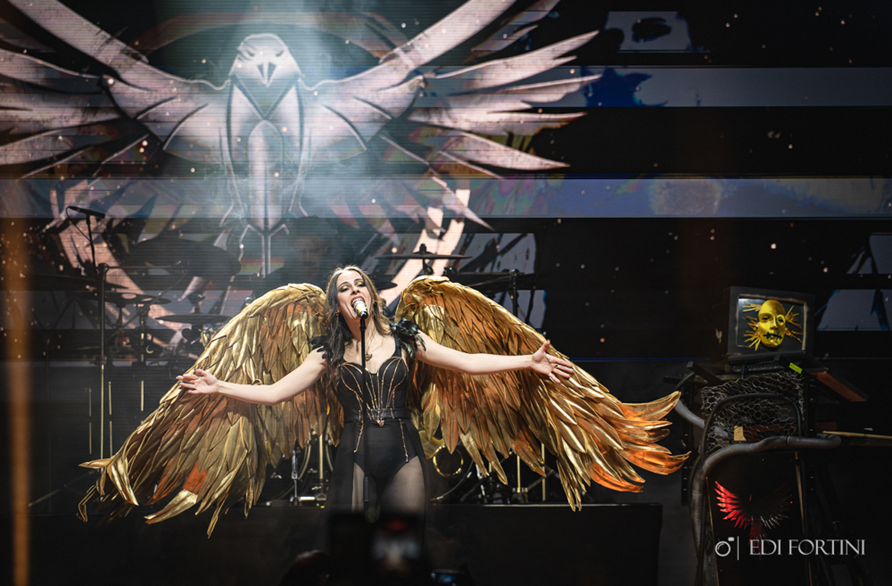 Depois da brutalidade do metalcore, Jennifer soa quase etérea, mas isso não significa menos poderosa. Pelo contrário. Há algo de profundamente inspirador em ver uma mulher comandando um palco desse porte com tanta segurança. Ela simplesmente é. Canções como “Break the Silence”, “Hysteria” e “Ravens” ganham ainda mais peso ao vivo, especialmente quando as icônicas asas douradas surgem no palco, transformando o momento em algo simbólico: vulnerabilidade e poder coexistindo na mesma imagem.
