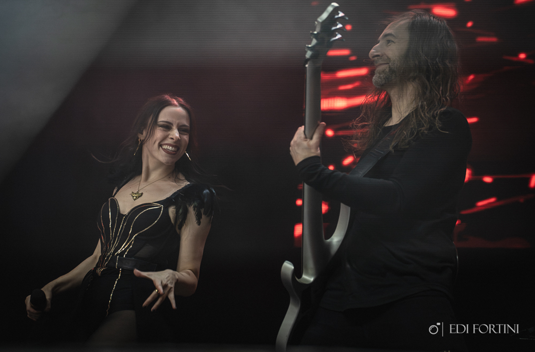 E então veio o momento mais aguardado da noite. Beyond The Black entrou em cena como quem sabe exatamente o tamanho que ocupa hoje na cena europeia, e muito disso passa pela força da vocalista Jennifer Haben. Vestida de preto, ela domina o palco com uma elegância quase serena, mas nunca frágil. Sua voz impressiona não só pela técnica impecável, mas pela capacidade de alternar entre suavidade e intensidade sem perder emoção.