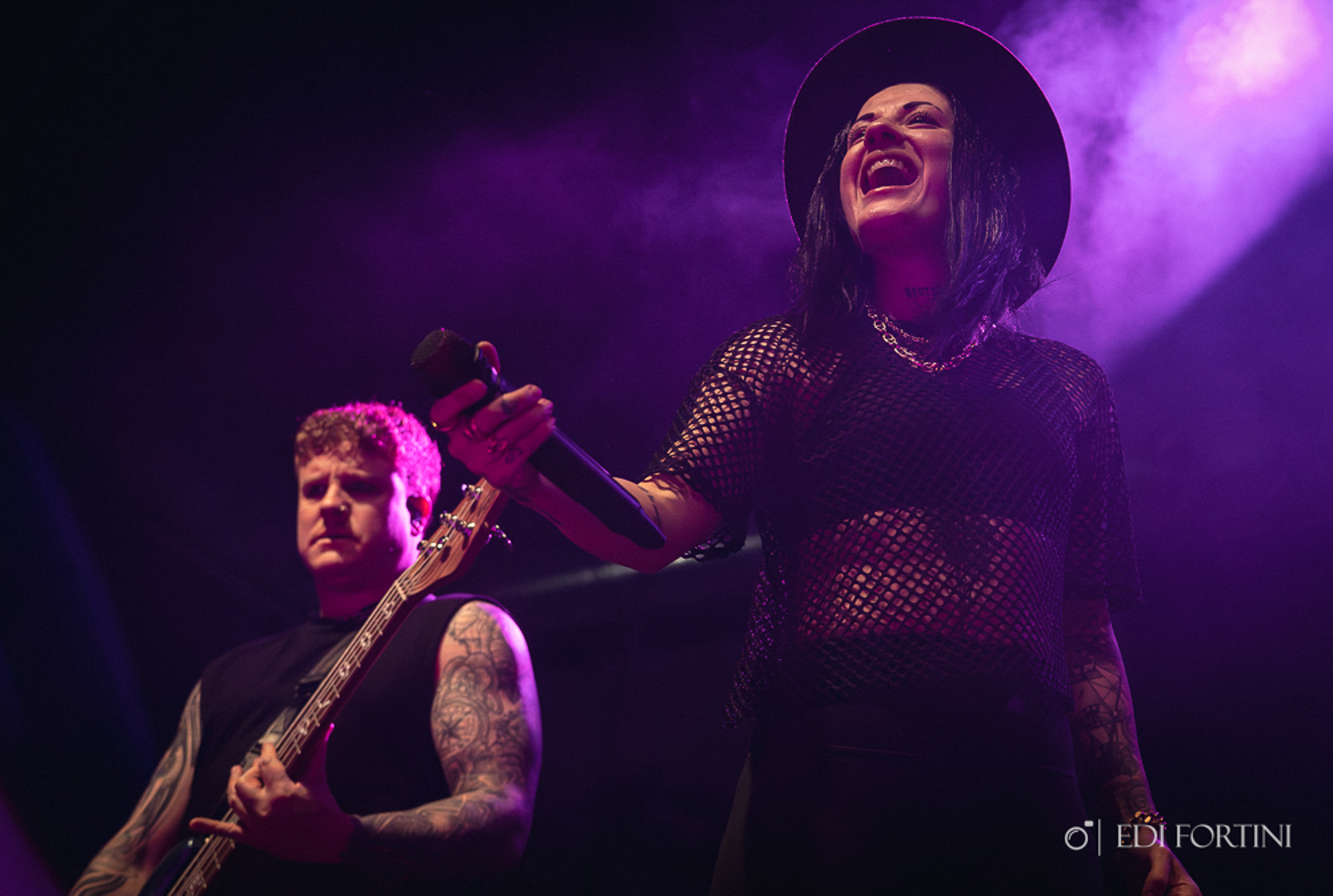Se Seraina trouxe cor e fantasia, o SetYøurSails entrou para demolir tudo. Com Jules Mitch à frente, a banda assumiu o papel mais pesado da noite sem qualquer hesitação. Aqui não há delicadeza: há confronto, catarse e urgência. Jules não canta apenas, ela comanda, provoca e puxa o público para dentro do caos controlado que é o show da banda.