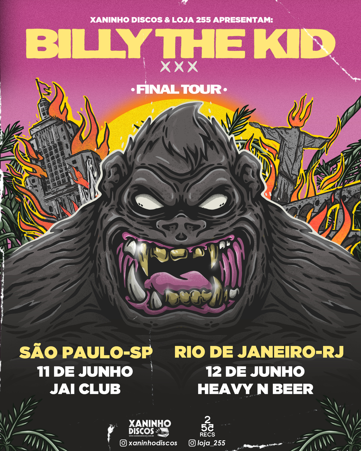 Direto da Costa Rica, Billy the Kid, um dos mais autênticos e expressivos nomes da música pesada na América Latina com seu hardcore metalizado e cheio de elementos do hip hop e ritmos caribenhos, volta a São Paulo, no dia 11 de junho deste ano, desta vez com especial turnê de despedida dos palcos, que também passará pelo Rio de Janeiro (12/6).