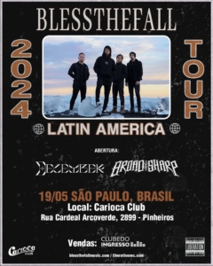 Já é neste fim de semana a esperada turnê de retorno dos norte-americanos do Blessthefall ao Brasil, e mais uma vez com realização da Liberation Music Company. Serão duas apresentações: dia 18/05 (sábado) em Curitiba, no Jokers, e dia 19/05 (domingo em São Paulo, no Carioca Club.