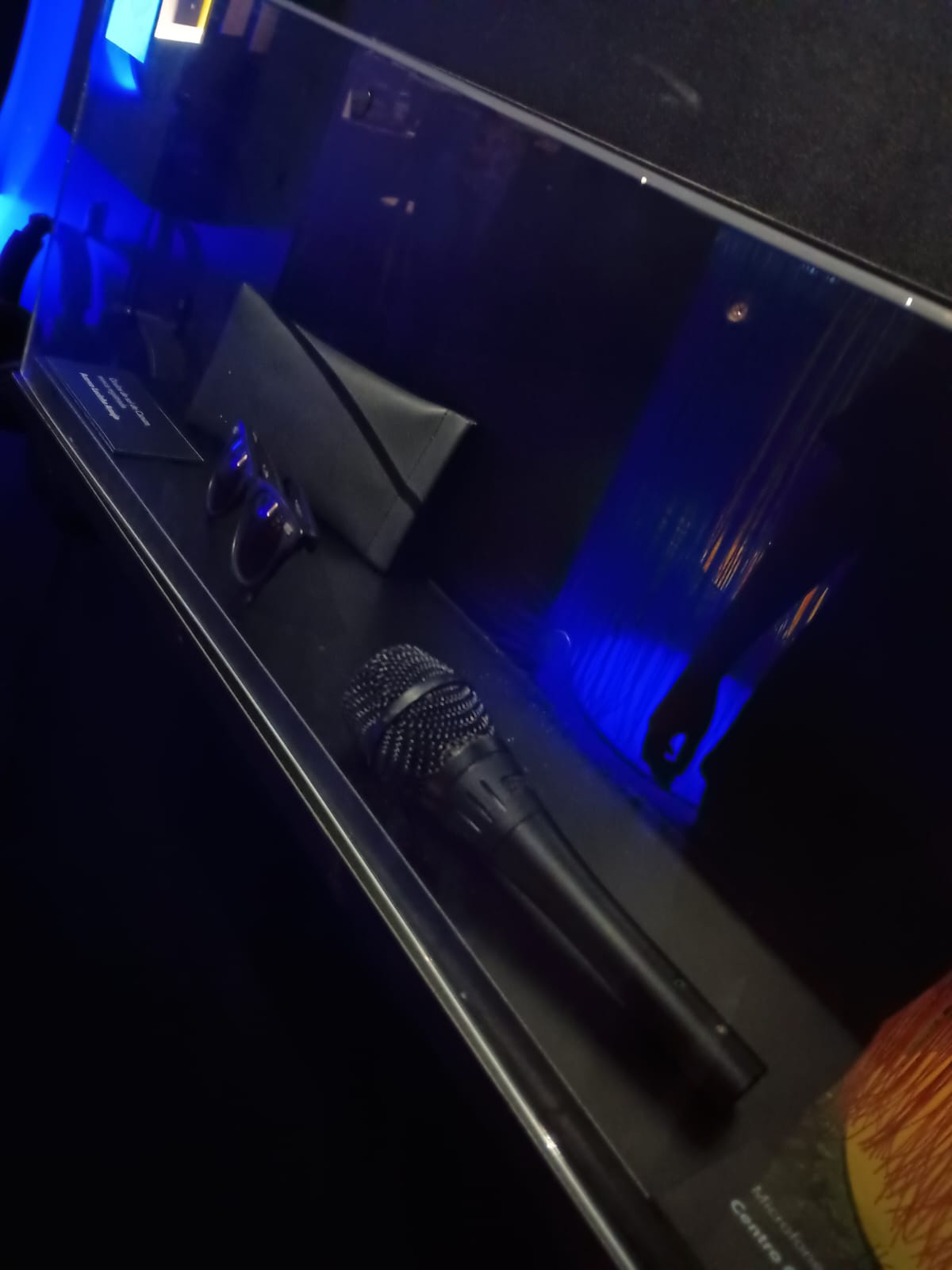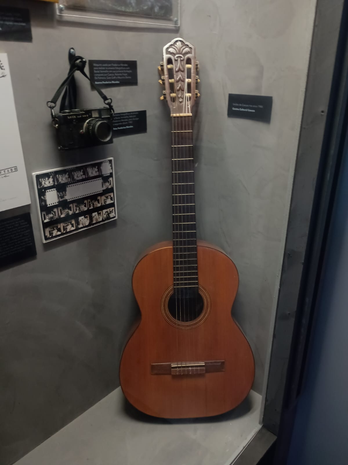 Eu, como jornalista, escritora e vocalista, tive arrepios ao ver: a escrivaninha original da casa dele, onde, sentado à máquina ele escreveu hinos e confissões “eu protegi seu nome por amor, em um codinome beija-flor”, poemas e cartas para amigos e familiares; o violão de suas composições; seu microfone – o parceiro de vários recados e levantes!