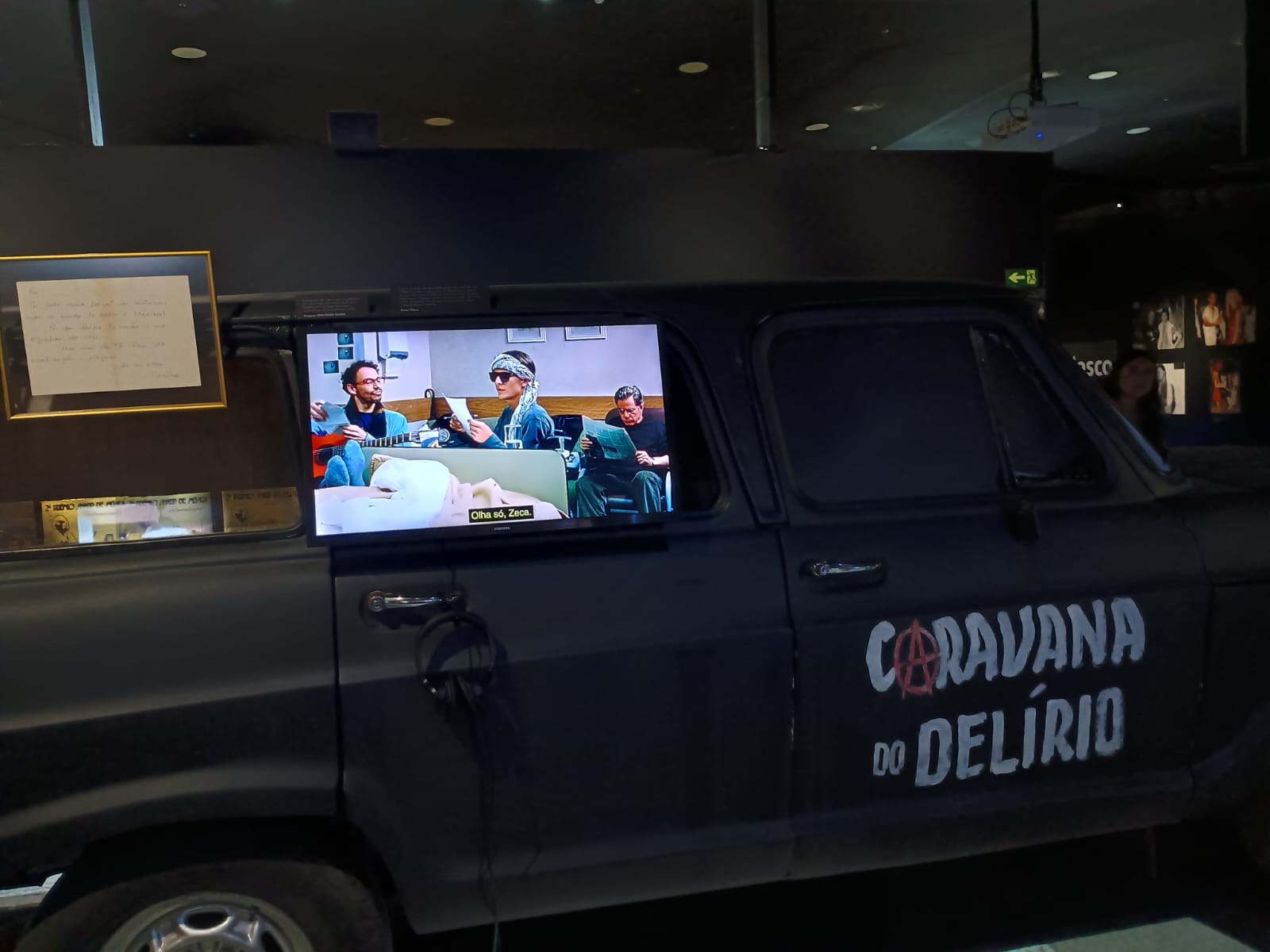 Uma das salas, “Caravana do Delírio“, conta como Cazuza, já acometido pela “maldita”, como ele, carinhosamente, chamava a AIDS, lotava sua veraneio com amigos e iam ver as ruas do Rio, a praia… em um de seus últimos passeios, seu motorista o pegou no colo e o levou para tomar banho de mar. Cazuza morreu semanas depois. Nesta sala, a veraneio foi montada ao centro, com uma projeção de movimento no chão. Eu, sinceramente, não pude ficar prestando atenção nessa projeção, por receio de cair, como quase aconteceu. Mas isso porque eu tropeço no meu próprio pé, então, não sou exemplo para nada! Amigos e parceiros de música de Cazuza também estão presentes nesta sala, mas um, em especial, me chamou atenção: Renato Russo.