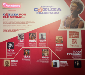 Inspirada pelo aniversário de 40 anos do álbum “Exagerado”, a exposição é altamente tecnológica, permitindo a verdadeira imersão na história do cantor, com a possibilidade de assistir documentos audiovisuais, escutar sua música preferida de forma particular, para que você tenha sua experiência singular, mas também conta com mais de 700 itens físicos (entre fotos, documentos, instrumentos, peça de vestuário, móveis…) do acervo de Lucinha Araújo e Sociedade Viva Cazuza!.