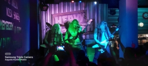 Chegou a hora dos suecos do Ambush fazerem a sua estreia nos palcos Brasileiros e eles o fizeram muito bem, a banda, formada por Linus Fritzson (bateria), Oskar Jakobsson (vocal), Olof Engqvist e Karl Dotzek (guitarras) e Burning Fire (baixo) subiram ao palco e com a simpatia que eles demostraram antes de subirem ao palco, ao receberem todos numa boa, conversar com o pessoal, eles mantiveram em palco, mas com uma postura extremamente forte, visual que acompanha o seu som, focado no Old School Heavy Metal e eles não tem como negar a influência direta do Judas Priest e Accept, tanto na construção de suas músicas, como na parte visual de suas roupas até nas coreografias, com aqueles momentos de “dancinhas de cordas” que a gente já está acostumado em ver em palco. O Ambush, infelizmente, foi a banda que mais sofreu com problemas no som, tendo diversos momentos que a guitarra solo não se ouvia nada, literalmente e o vocalista, coitado, as pilhas de seu microfone deram problema e ele usou o microfone do backing vocal, as vezes uns “estouros” aconteciam e isso foi incômodo. Mas isso não importou muito, a entrega desses caras em palco, agitando e tocando as músicas dos seus discos, do EP Barabbas, músicas do disco Infidel foi sensacional! Quem comparecer à extensa tour Latino Americana da banda, irá ter a experiência de ver uma banda muito boa em palco e que se entrega com muita força, showzaço.