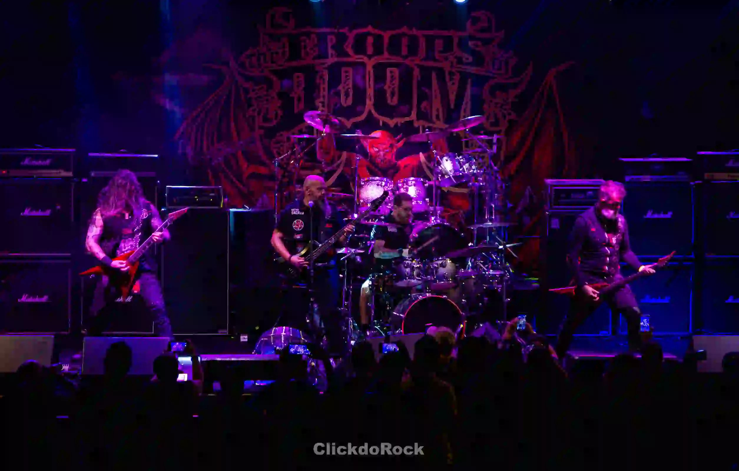 Quando o Troops of Doom entrou no palco, logo mandaram ver com a introdução The Absence of Light, seguida de Act I – The Devil’s Tail. O vocalista e baixista Alex Kafer não perdeu tempo e, antes mesmo de a música continuar, provocou o público: “Cadê esse público? Isso é um show de heavy metal, abre essa porra da roda!” Ele repetiu o pedido por várias vezes, incentivando o pessoal a se jogar no mosh e aumentar a energia da apresentação.