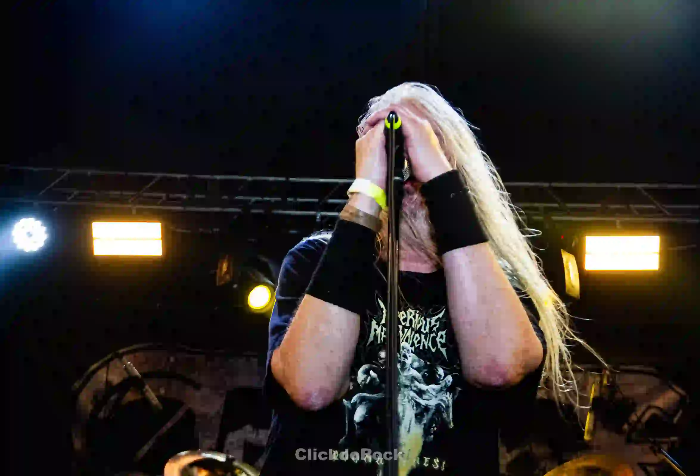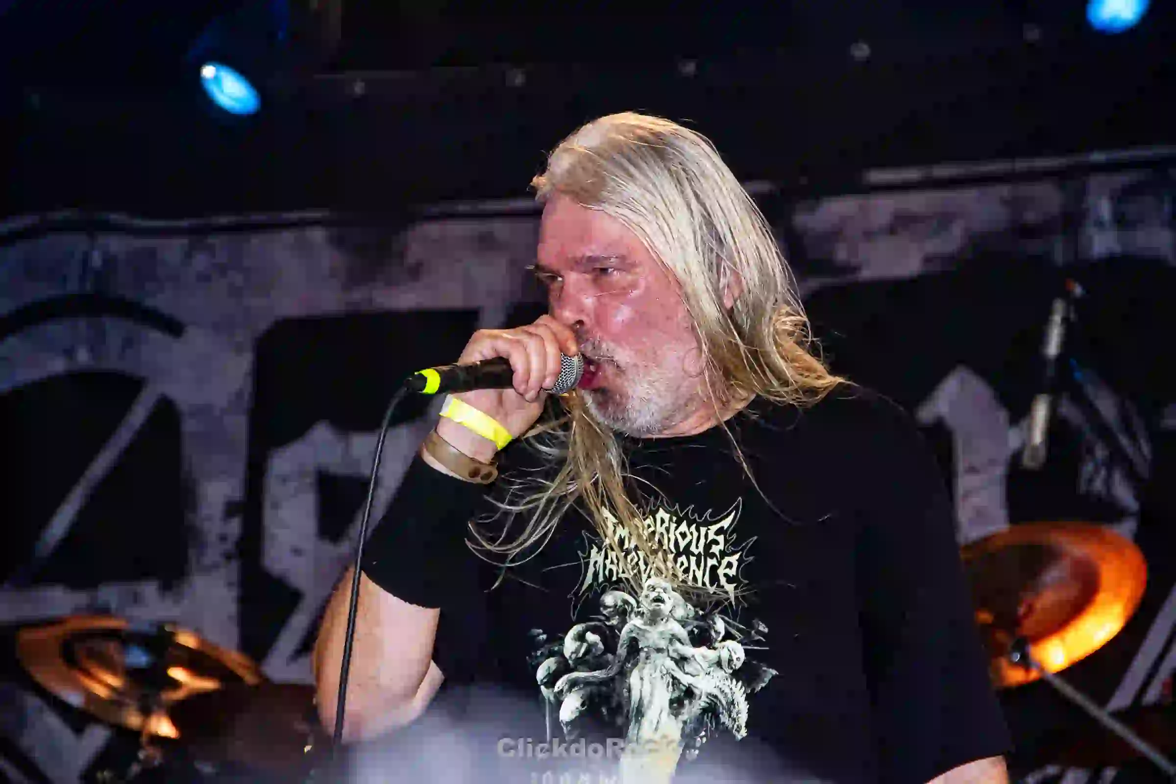 Já o Asphyx subiu ao palco com tudo, abrindo com The Quest of Absurdity e logo detonando com Vermin, faixa do primeiro álbum da banda. Foi como voltar no tempo para 1991. A sequência foi arrasadora: Molten Black Earth, uma verdadeira aula de death doom, seguida por uma trinca de clássicos, com Death the Brutal Way, Asphyx (The Forgotten War) e Deathhammer. Deathhammer, uma das faixas mais emblemáticas da banda, ficou ainda mais pesada ao vivo, mostrando a energia brutal do Asphyx em sua melhor forma. Apesar do público reduzido, o show foi fantástico, com muita energia tanto da parte das bandas quanto dos fãs, que, mesmo em número menor, não deixaram de aproveitar ao máximo a noite.