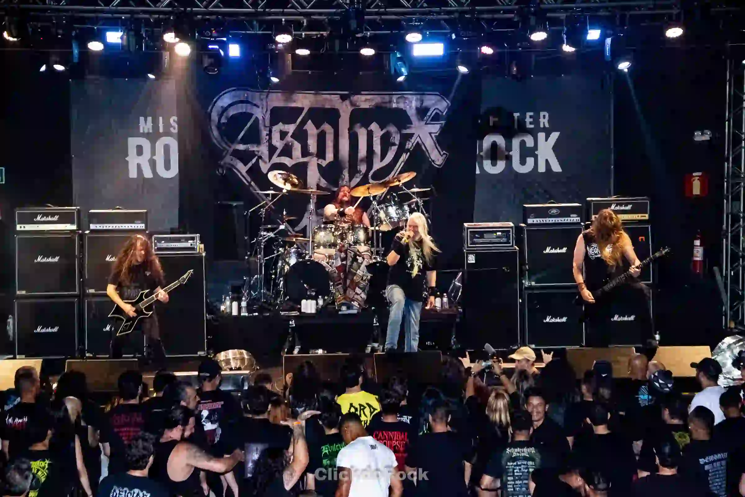 O Asphyx, uma das maiores bandas de death/doom da cena europeia, foi formado em 1987 na cidade de Oldenzaal, na Holanda. Desde então, a banda tem se mantido fiel ao seu estilo sombrio e brutal, com uma carreira marcada por 10 discos de altíssima qualidade. Eles já haviam se apresentado no Brasil quase 10 anos antes, durante a Krushing Latin America Tour de 2015, passando por São Paulo, Rio de Janeiro, Brasília e Curitiba. Em 2024, o Asphyx retornou à América Latina com a turnê South America, the Brutal Way…, promovendo seu último álbum Necroceros (2021).