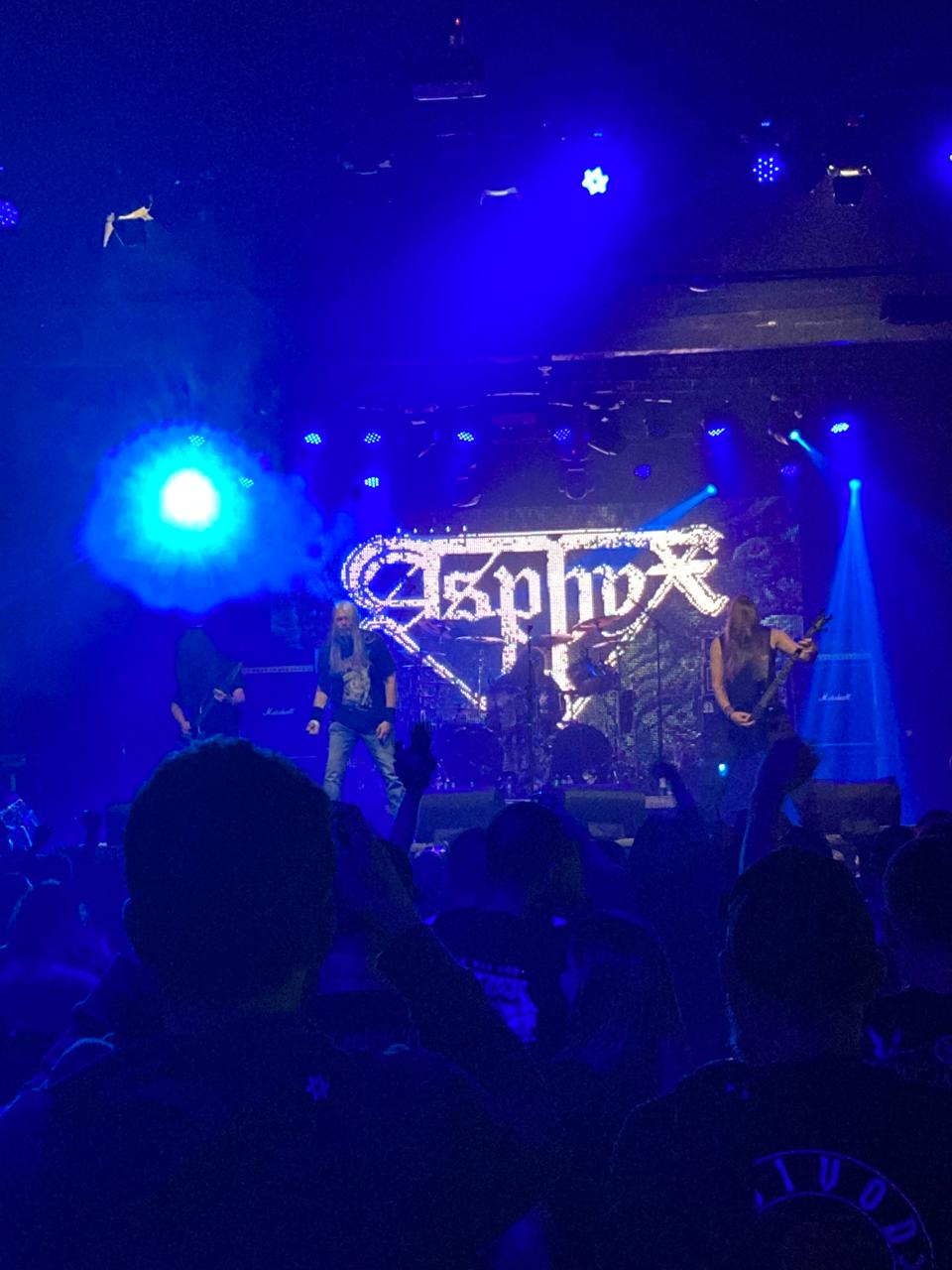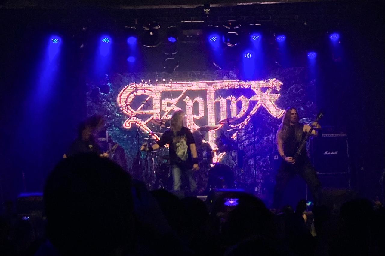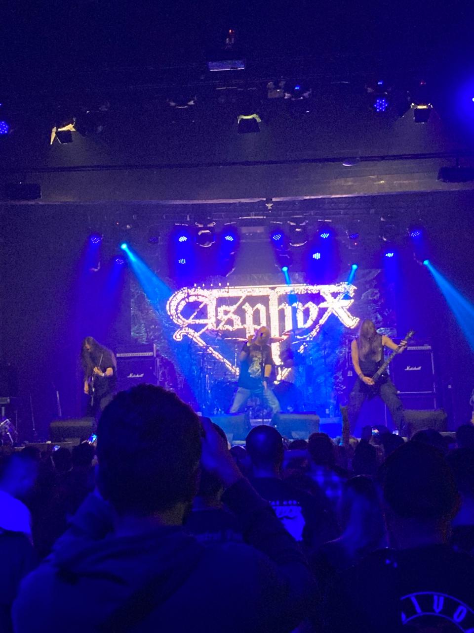 Ali só tinha fã. Quando o Asphyx subiu ao palco, a energia do Carioca Clube finalmente explodiu. O show começou com “Vermin“, do primeiro disco, e logo em seguida já deslanchou para “Botox Implosion“, do último álbum, “Necroceros“. A transição entre clássicos e faixas mais novas funcionou perfeitamente, mantendo a intensidade lá em cima. Logo depois de “Asphyx”, onde já estava todo mundo agitando que nem louco, “Deathhammer” foi realmente uma martelada no peito.