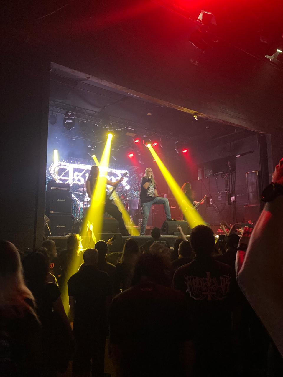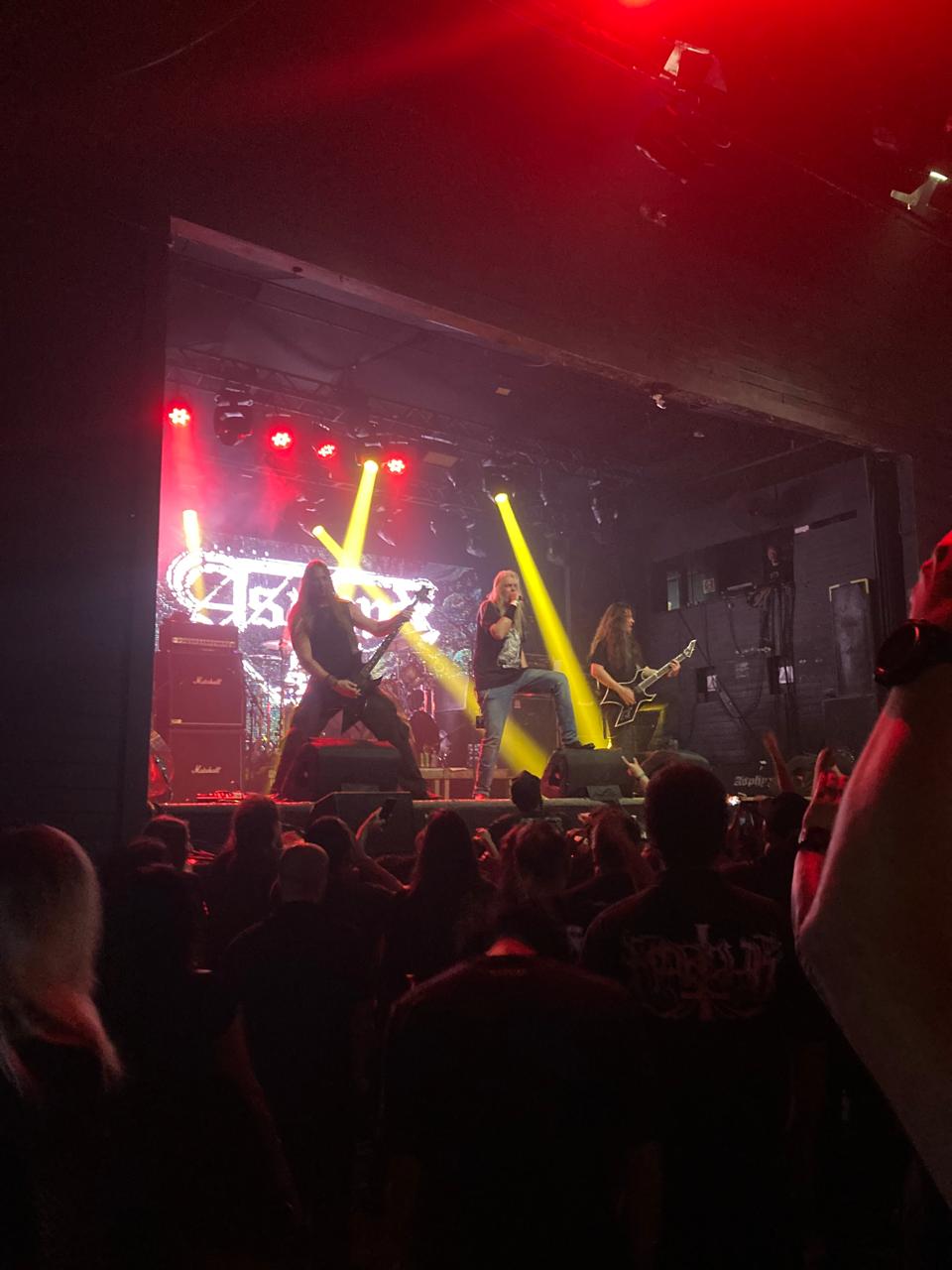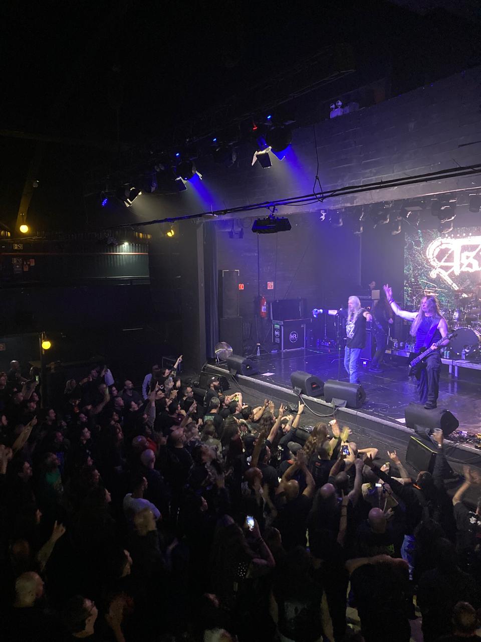 Ali só tinha fã. Quando o Asphyx subiu ao palco, a energia do Carioca Clube finalmente explodiu. O show começou com “Vermin“, do primeiro disco, e logo em seguida já deslanchou para “Botox Implosion“, do último álbum, “Necroceros“. A transição entre clássicos e faixas mais novas funcionou perfeitamente, mantendo a intensidade lá em cima. Logo depois de “Asphyx”, onde já estava todo mundo agitando que nem louco, “Deathhammer” foi realmente uma martelada no peito.