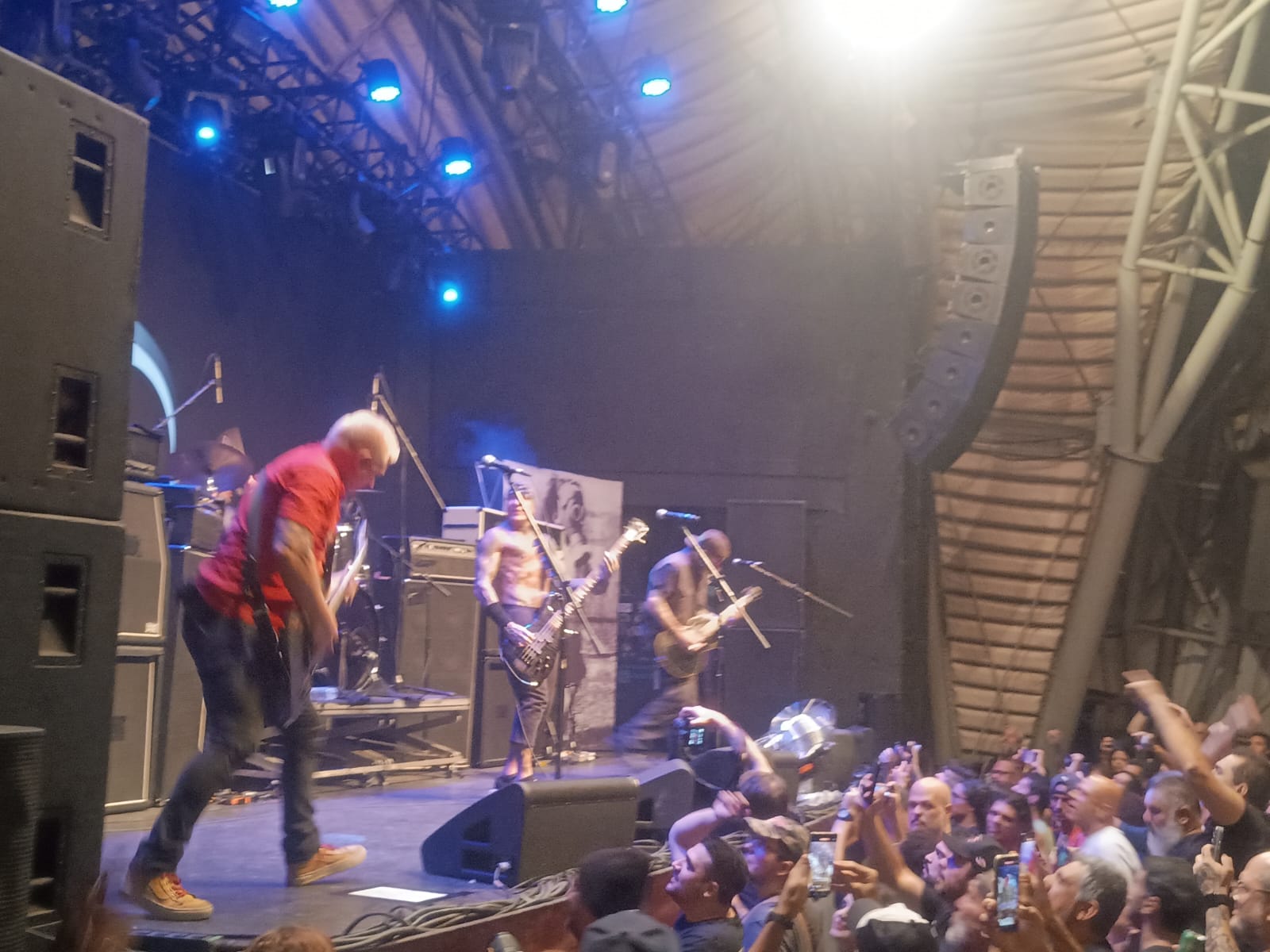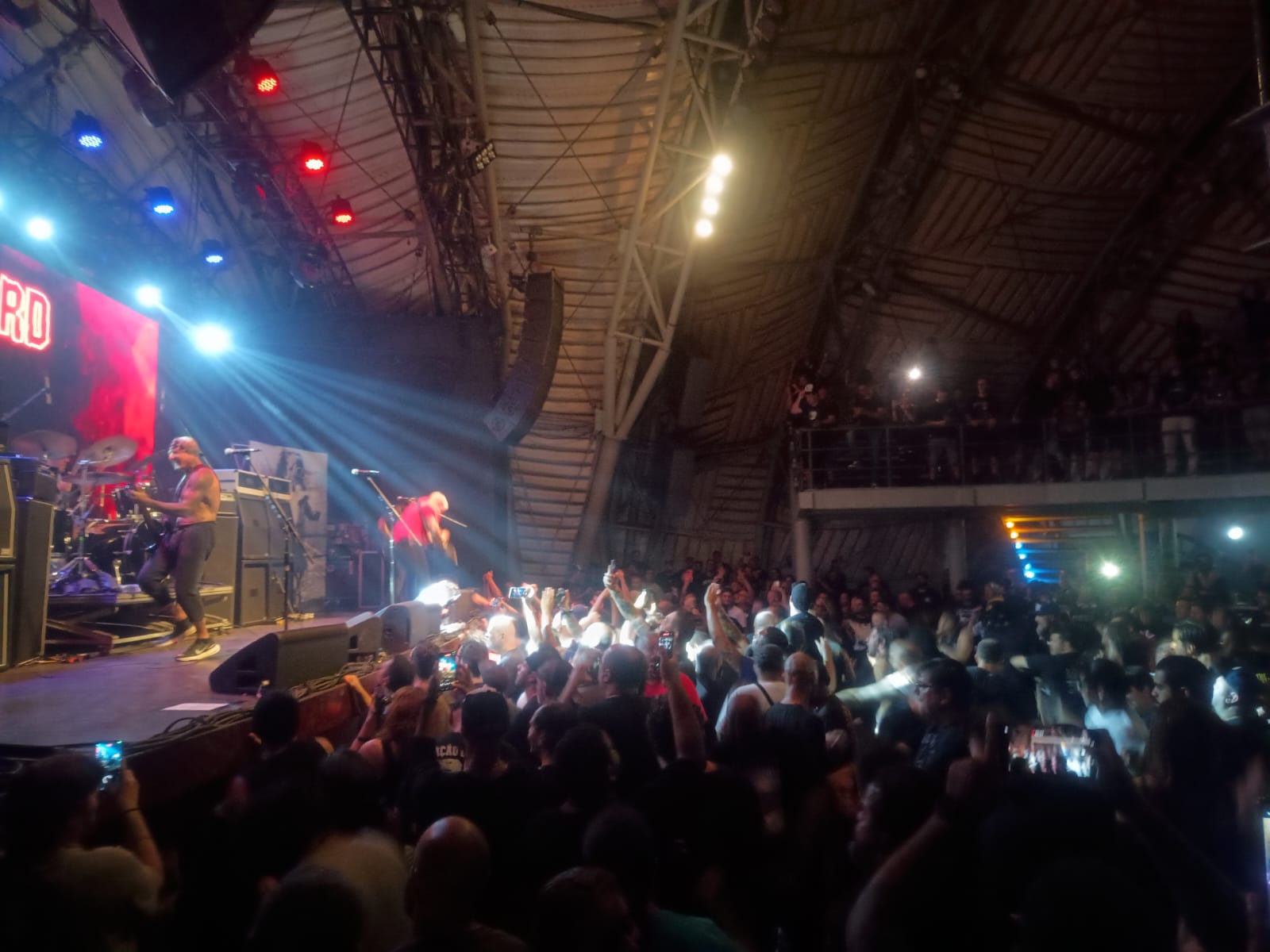 Bem, chegando ao Circo Voador, na Lapa Carioca, o clima de festa era nítido, várias rodas de Samba em homenagem ao dia, pessoas diversas na rua, mas em frente a casa mais clássica, um vazio estranho e eu já imaginaria o porquê, mas credencial pega, dei entrada na casa, que já estava com o palco pronto para a banda de abertura, o Raimundos, que entrou em palco às 20:00hr e Digão (guitarra e vocal), com seus companheiros subiram em palco, com um som falhando, já que a primeira música, Deixa Falar, a guitarra simplesmente não tocou, mas depois de resolvido, até que a qualidade melhorou, mas mesmo assim, sem pressão nenhuma. Foi extremamente triste ver a trilha sonora de tantos ali presentes, sendo tão mal recebido e pouquíssimo celebrado, muito por conta das recentes confusões e declarações dadas pelo próprio Digão, a algum tempo. O Hardcore não perdoa e cobra. E, pelo menos, ontem o Rio de Janeiro de um pagamento, pouca gente entrou no Circo para ver um show triste e pífio dessa que um dia foi uma das maiores do país e nem o setlist repleto de clássicos de outrora aqueceu o pouco público presente, que só respondeu com o “apelo” por parte da banda à Metallica (Creeping Death) e Slayer (Raining Blood), um triste final pra uma banda que lotou tantos estádios Brasil à fora.