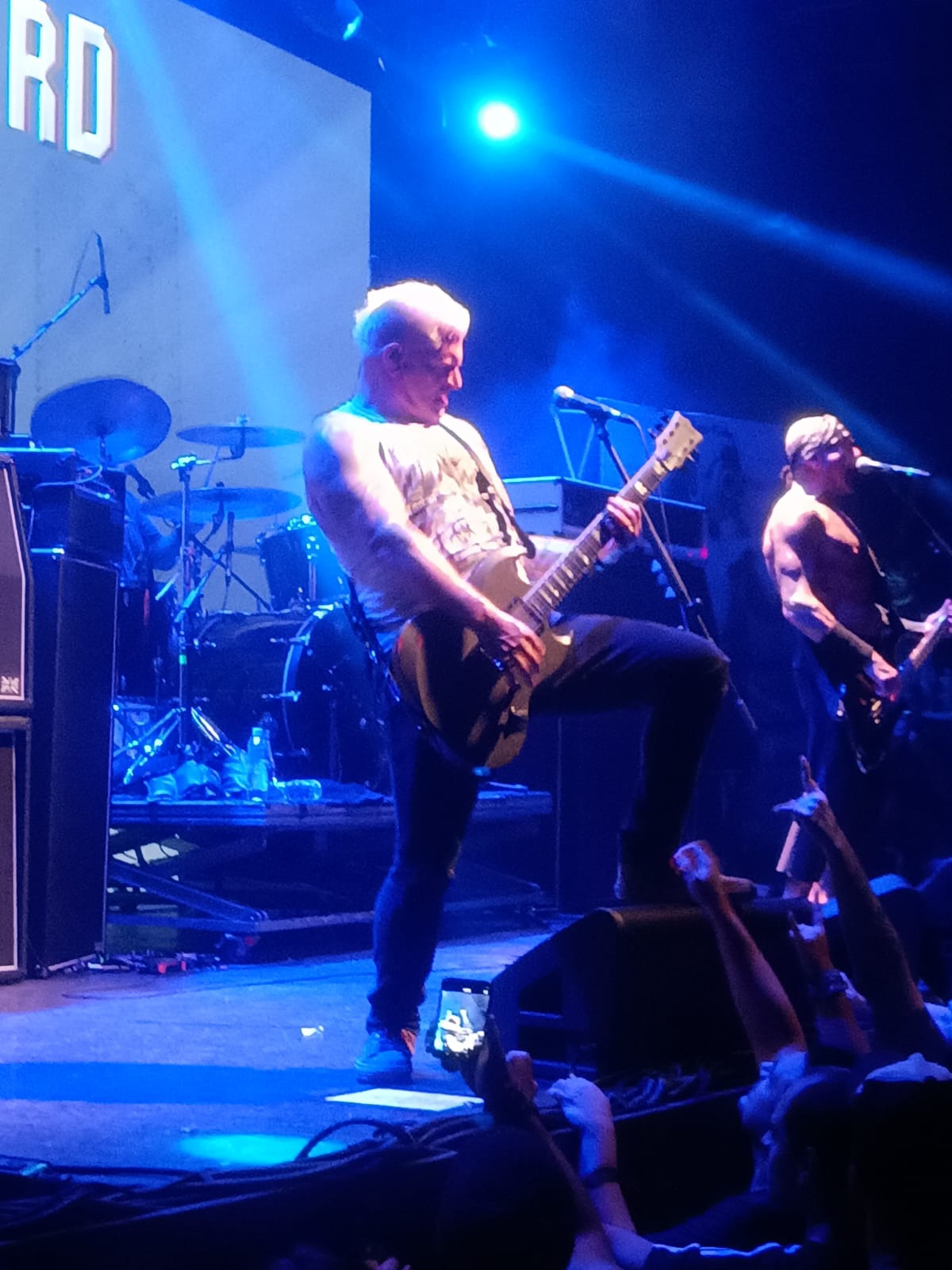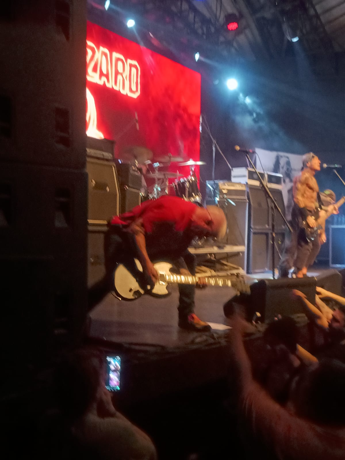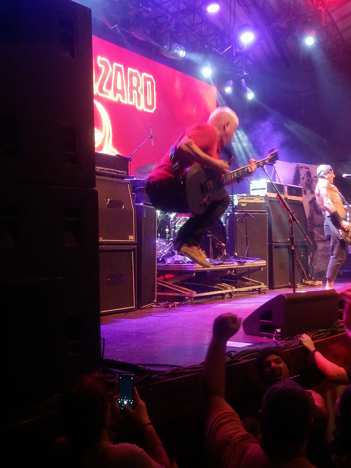 O show foi repleto de clássicos, um setlist simplesmente matador, tocando canções dos 4 primeiros discos e como o show foram somente doze músicas, faltou muita coisa, mas ainda assim, o Biohazard em palco é uma aula de vitalidade!! Mas, depois dessas três clássicas, tivemos Retribution, Five Blocks to the Subway, Victory e antes de anunciar Love Denied, Evan Seinfeld faz um belo discurso sobre família e mostra o seu moleque, que está em tour com a banda, gravando tudo para posterior divulgação. Já começaríamos para a parte final do show, mas o Biohazard não perdoa e vem com o maravilhoso cover para Bad Religion, We´re Only Gonna Die e depois meus amigos, segura: Punishment e Hold My Own e posso falar que ouvir o baixo de Punishment ao vivo foi enlouquecedor e me mantive em frente ao palco, berrando esse hino como se não houvesse amanhã, até que, Hold My Own começa a ser executada e Billy em determinado momento, tem a brilhante idéia de ficar em pé, com a sua guitarra em riste, com a galera segurando! Ok, mas eu estava ali, ele me olha e gestualmente faz o pedido e não poderia deixar de atender o desejo desse “regente do Hardcore” e assim aconteceu, eu e mais alguns fãs conseguimos manter o guitarrista em pé, bem mais perto do seu público.
