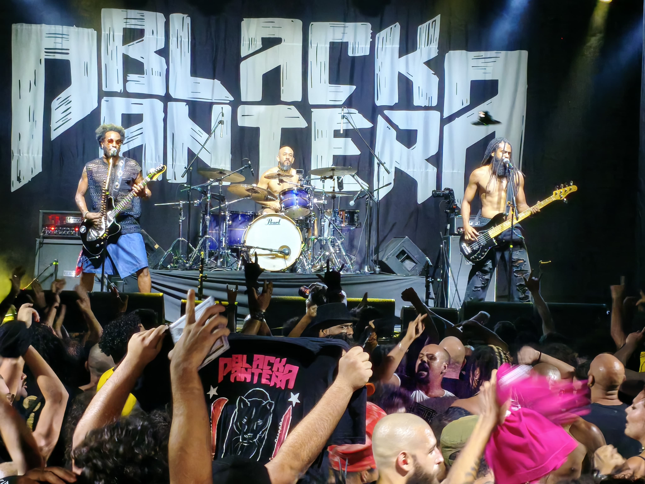 Mas, o Black Pantera ainda guardava muito para o seu público e  ele não decepcionou, lógico que teve a clássica “roda das minas”, aonde a mulherada mostrou a sua força no cenário, com Abre a Roda e Dreadpool, teve Ratata e Sem Anistia, aonde o coro “Hey Bolsonaro Vai…” se fez presente e antes de fechar a noite, A Revolução é o Caos e a primeira música da banda, Godzilla, foi executada.