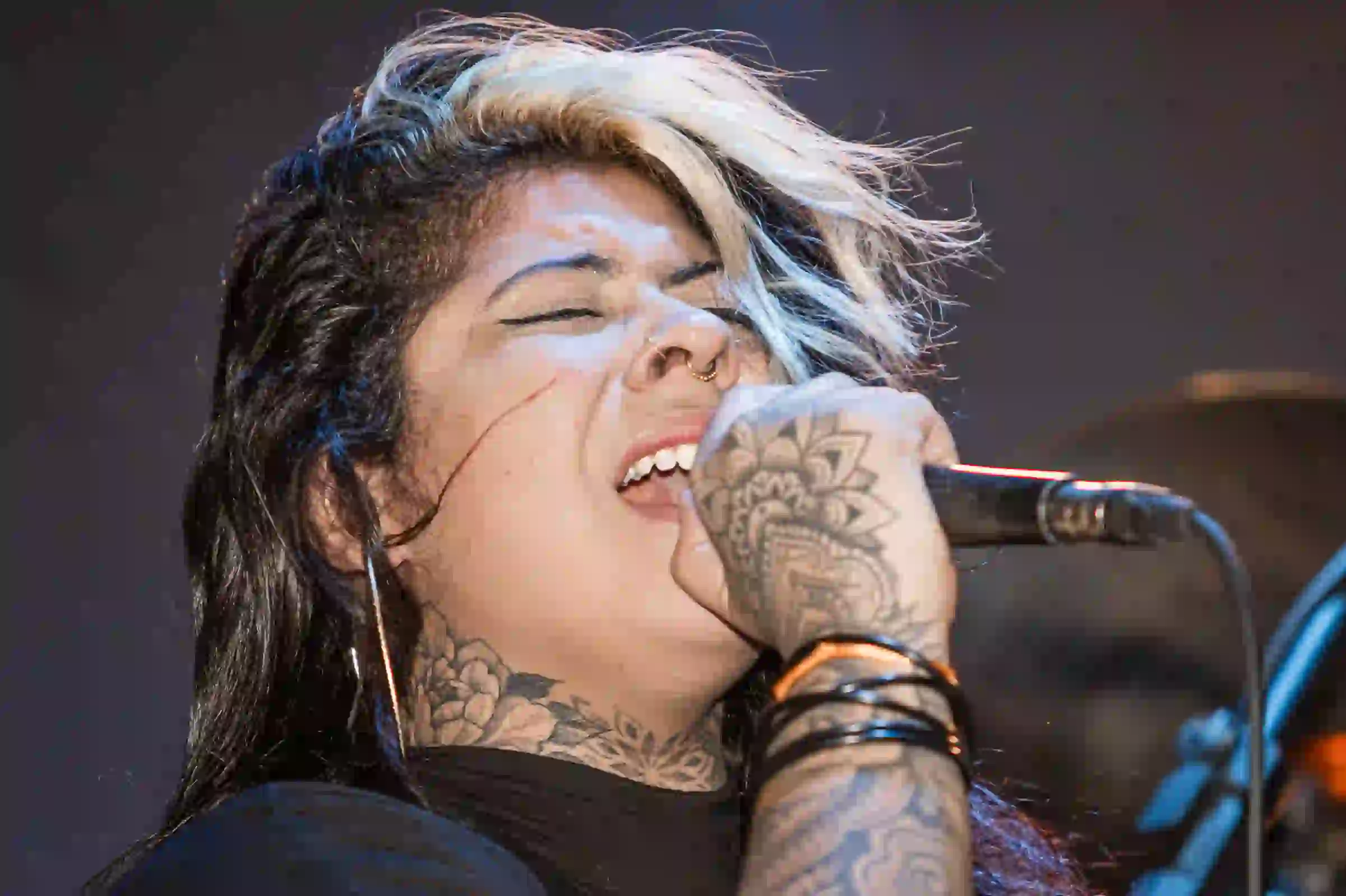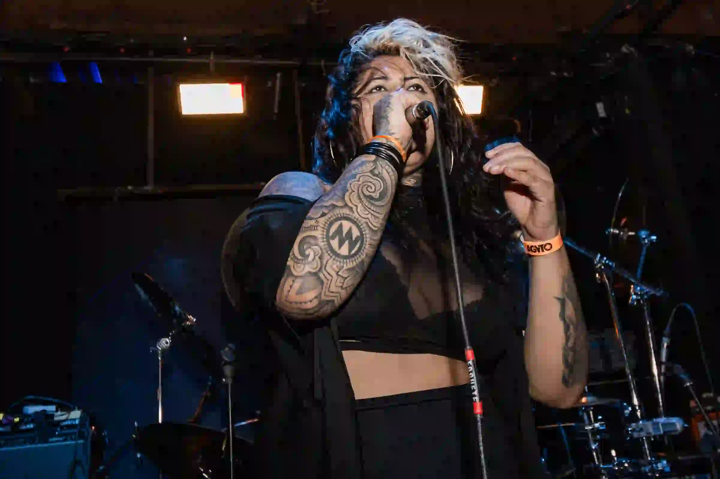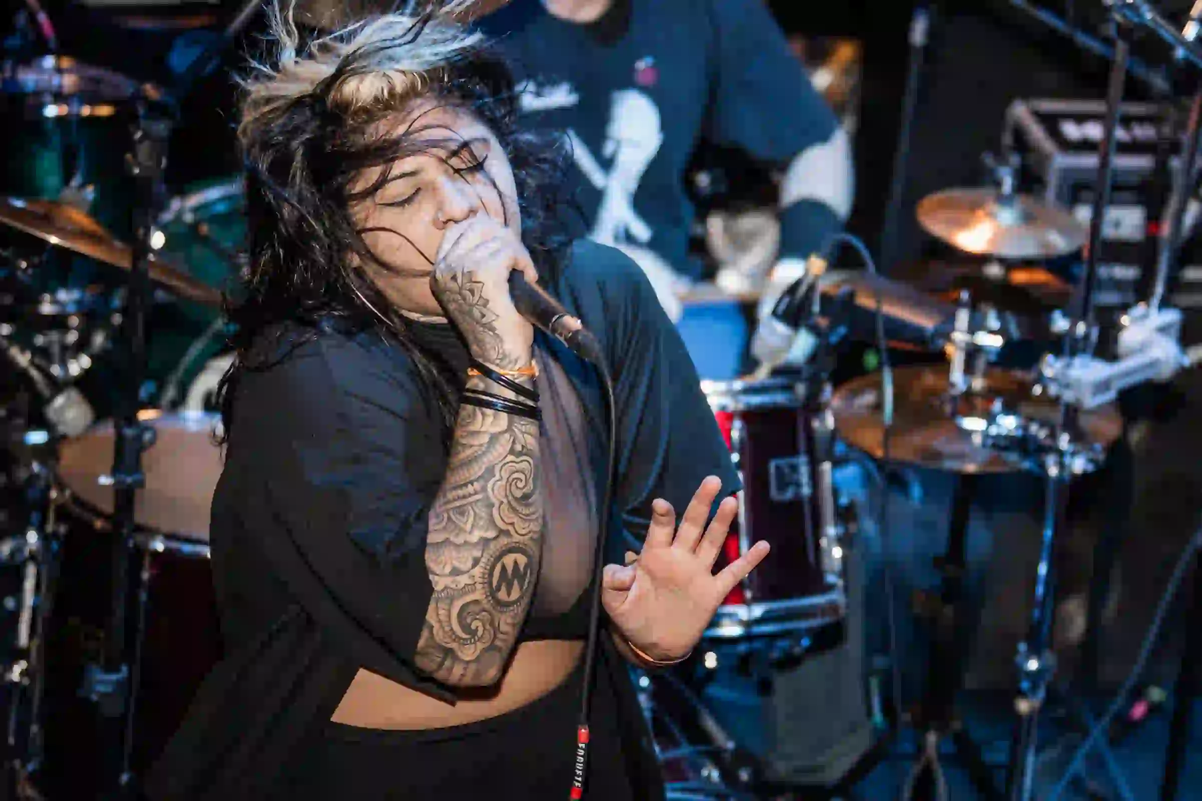 A vocalista tem domínio de cena absurdo, mantendo o magnetismo habitual mesmo em espaço reduzido. Ao começar o baile do capiroto lá em cima com as já consagradas “Crucifix” e “Ghosts”, ganhou o jogo de cara, e mesmo as novidades do repertório, como “Fallen Angel”, “At the Mortuary”, “A Coffin Has No Silver Lining” e “Maculate Heart” soam como velhos hits e fazem a festa da galera, mostrando o grande momento que vive a banda.