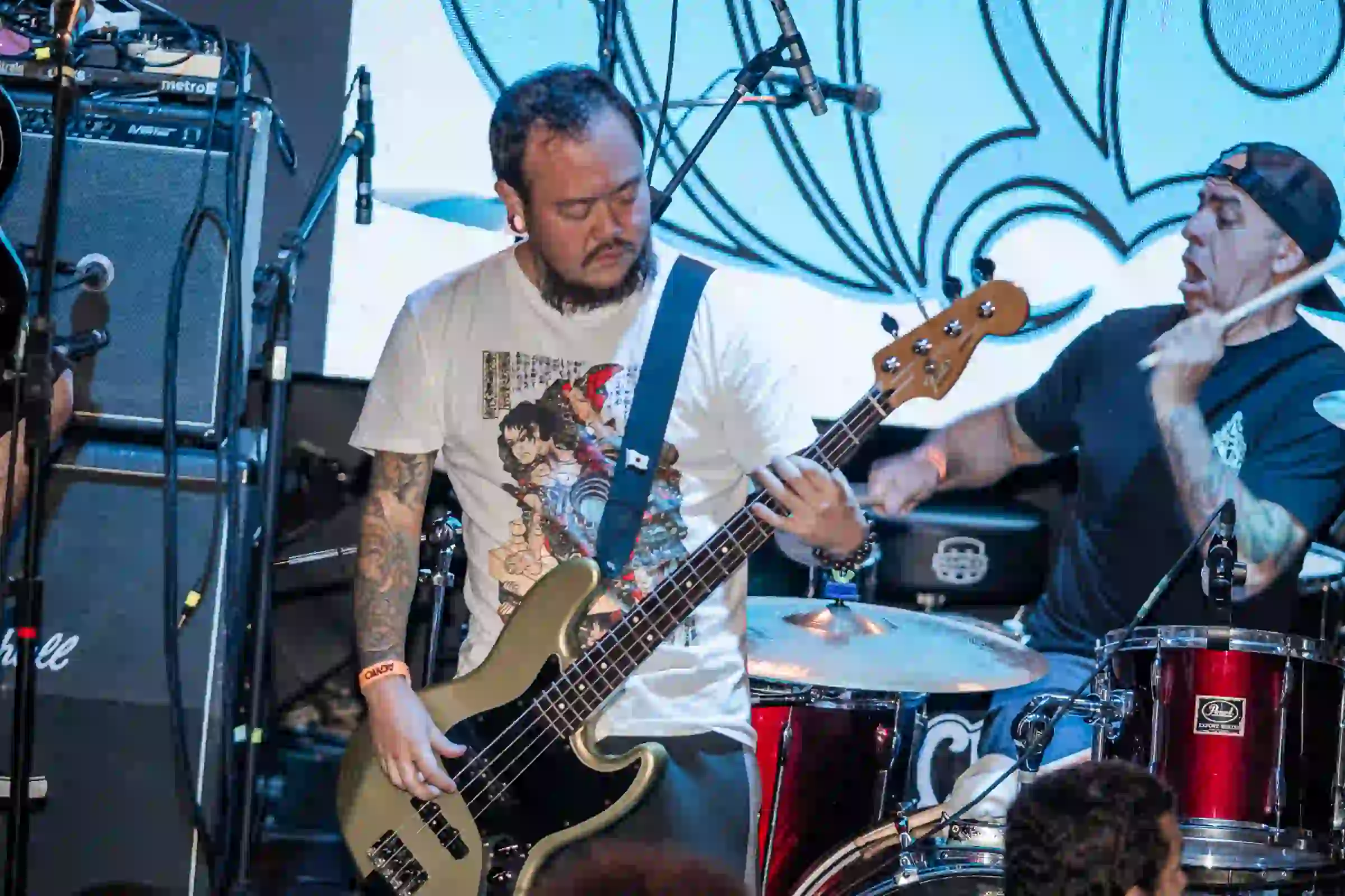 Em seguida, o baterista Boka, do Ratos de Porão, subiu ao palco provando e comprovando sua versatilidade ao defender o projeto paralelo Apnea. Mantendo enorme distância do Hardcore/Crossover de sua banda principal, o quarteto surpreendeu surfando uma onda cheia de influências do Kyuss e da cena Desert Rock, com ecos, também, de Alice in Chains. Excelente esquenta para o que estava por vir.