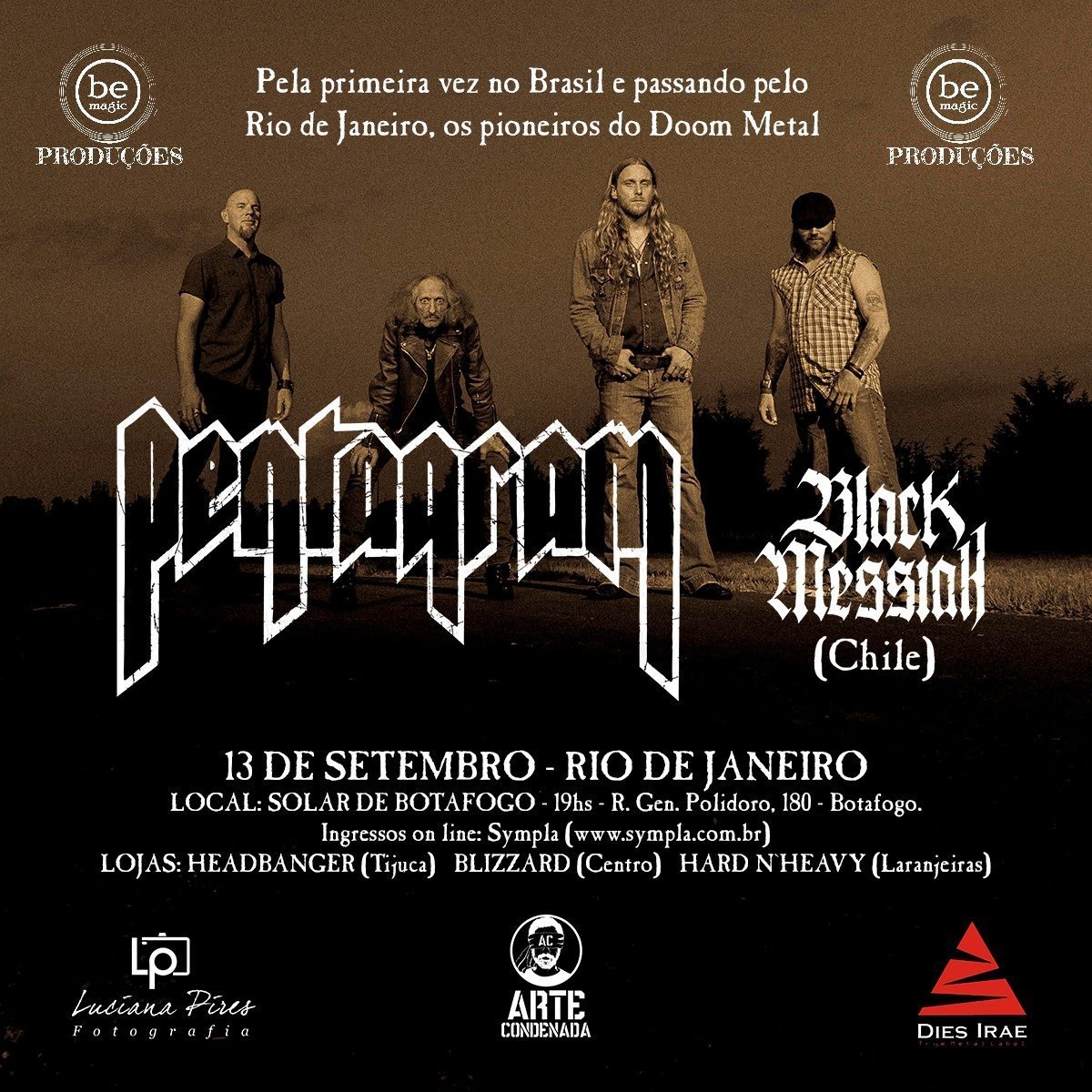 Nessa terça feira, o clássico Pentagram passaria pela primeira vez no Rio de Janeiro, com os “hermanos de Chile“, do Black Messiah sendo a banda de abertura, a noite prometeria ser uma noite de Doom Metal em sua essência. O Solar de Botafogo, local escolhido pela produção da Be Magic, com apoio da Dies Irae Records, foi perfeito, por ser de fácil acesso e de fácil saída, o simpático teatro era de tamanho ideal para o evento.