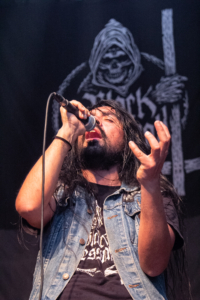 Umas 19:50, nossos “hermanos” do Black Messiah subiram ao palco, com um Doom Metal extremamente bem feito e muito pesado, com diversos momentos rementendo a mim à grandes momentos de outra clássica do Doom, o Candlemass, a banda, composta por Nancy Gomez (baixo), Felipe Troncoso e Rodrigo Echeverria (guitarras), Ricardo Letelier (bateria) e Rodrigo Pérez (vocal), os chilenos, que mesmo sem um disco lançado, já mostram uma presença de palco incrível, o vocalista tem uma voz maravilhosa, fazendo subidas ótimas no tom de sua voz, a banda tem um timbre pesadíssimo e bem característico ao estilo, a banda mostrou suas composições próprias, com um destaque pessoal a música que fechou o repertório, The Martyr que além de ter um riff super rápido, ela flerta de uma forma muito criativa com os “clichês” que o formato apresenta e não tem como não citar o cover incrível de Azul Limão que a banda executou ontem, Sangue Frio. Temos uma banda que tem tudo para fazer muito barulho ainda no cenário Internacional, grande nome da América Latina.