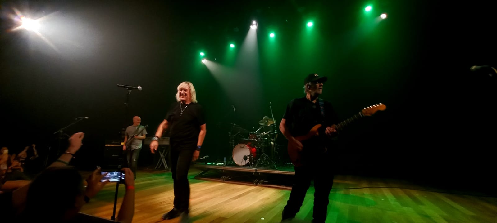 Só por esse motivo, a apresentação já trazia uma carga de nostalgia pra climatizar o ambiente. A abertura do show foi eletrizante e direto ao ponto: Bob entrou com sua guitarra na mão com as luzes acesas, plugou e após a contagem do excelente batera, o argentino Chris Borneo, as luzes apagaram ao mesmo tempo em que o riff de Destiny explodia nos falantes do teatro, com tanto peso e convicção que surpreendeu todo o público presente logo emendando com a igualmente poderosa Dance. O que se viu a partir daí foi um verdadeiro massacre sonoro com Just Reach Out e Angel Of Light. A seguir, John, esbanjando carisma e simpatia, deu a palavra a Bob, que anunciou rindo que a próxima sequencia seria um medley, já que dificilmente seria capaz de lembrar todas as músicas.