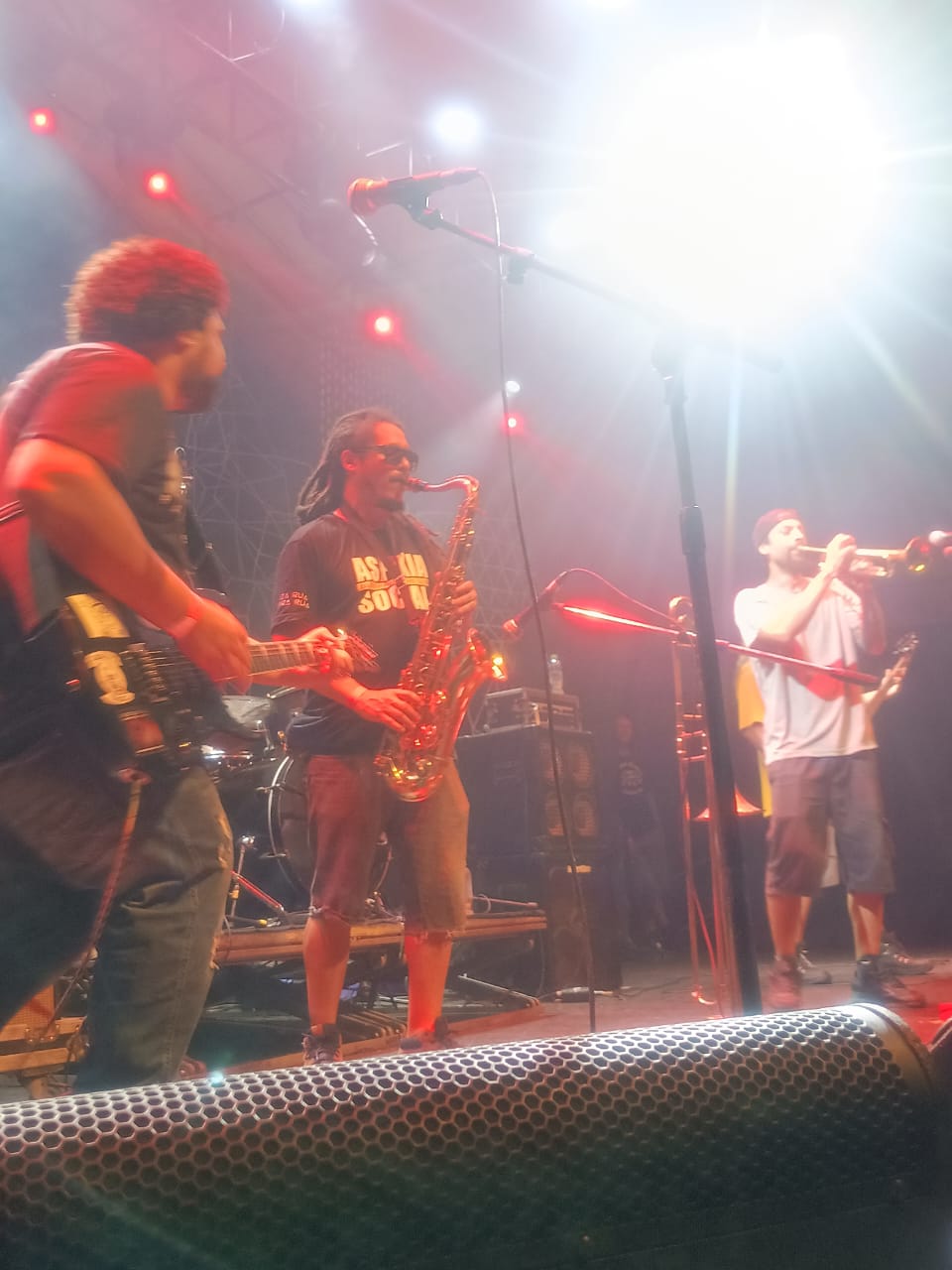 Quando a DJ Cammy volta pras pickups e continua dando o seu show e desfile de clássicos, vemos o palco do Circo Voador se preparar pra apresentação do Asfixia Social e de cara uma coisa me chama atenção ao ver o palco sendo preparado, um trombone é posto em palco e já fiquei ali, bem “na espreita” pra saber o que nos aguardava. Ao entrar na banda, vemos que temos ainda um saxofonista em palco e o vocalista ainda arrasa no trombone e no trompete, no qual ele toca durante uma apresentação super bem feita, mostrando um Rapcore/Ska muito bem mesclados em suas composições, aonde os Naipes de Metais no qual eu citei dão todo um “charme” único ao som da banda, sem contar que a música do Asfixia Social é muito bem composta, foi um show incrível de ter visto ontem.