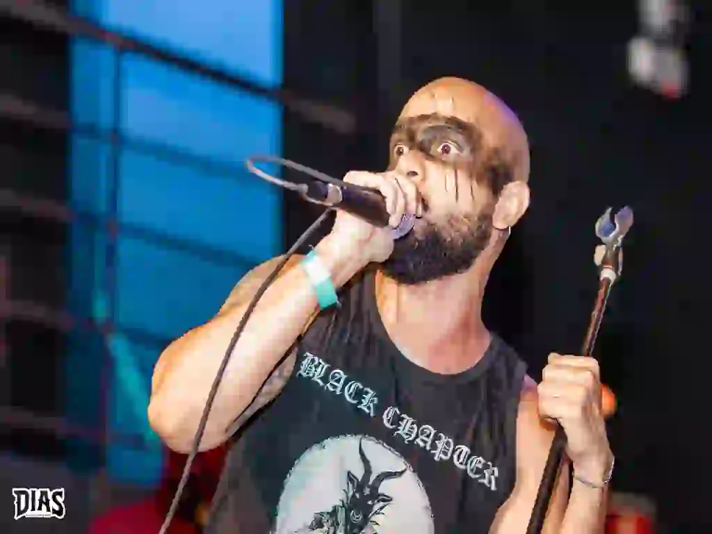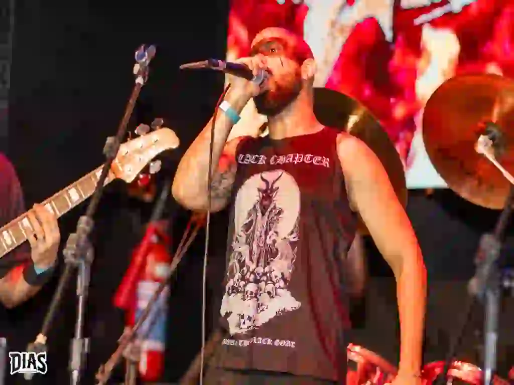 Logo após o Chaoslace, os cariocas do Sangue de Bode subiriam ao palco e, esse deve ser o terceiro ou quarto show no qual eu vejo deles e a banda só melhora e não é à toa que a banda a cada dia mais cresce, seja pela difereça visual em palco, já que o vocalista João entra em palco usando um baita Corpse Paint e mantém um visual bem “sujo”, enquanto o resto da banda é super polída, até com um visual diria eu, clássico e essa diferença é o primeiro ponto positivo, pois quebra completamente o padrão e o segundo é o som, já que a junção de letras anticristãs e bem próximas ao Black Metal, unidas a um som mais próximos ao Metal Moderno e até com passagens do Grindcore, o Sangue de Bode é uma força da natureza e o show deles foi incrível e agora, com um público maior, as primeiras rodas aparecem e o pessoal aquece ainda mais.
