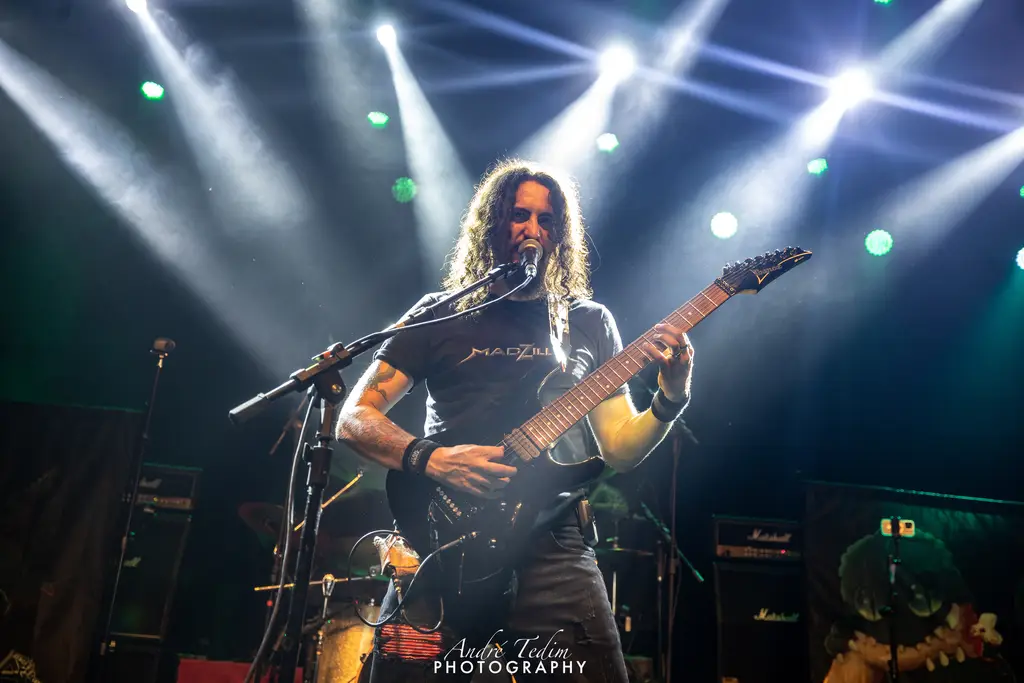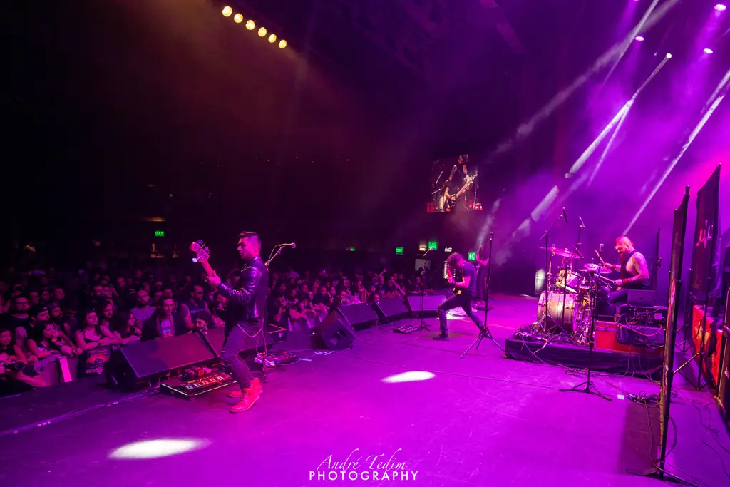 A banda de abertura Madzilla LV fez seu nome em uma boa apresentação! Subindo ao palco as 19h20, o vocalista e guitarrista David Cabezas se comunicou em português com o público, algo a ser admirado e respeitado, afinal, quantas bandas passaram por nosso país e ficam somente no “Obrigado“, com essa interação o retorno foi mais do que positivo do público local.