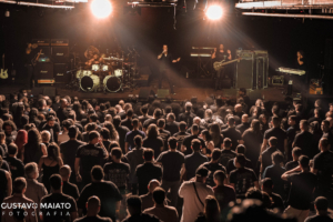 Agora, vamos ao shows, que, com certeza é o que vocês estão esperando para ler eu vou começar pelo Rec/All conta com nomes de peso do cenário Nacional, nomes como Marcelo Barbosa e Felipe Andreoli(guitarra e baixo do Angra), Bruno Sá(teclado – Geoff Tate, Tarja, Angra e mais), Rod Rossi(vocal) e Pedro Tinelo(bateria) e com um time estrelado desses, você já pensa em ver um show incrível certo? Então, não nesse caso, caramba, que troço chato, não vou negar que a banda é de músicos monstruosos, todos de qualidade inacreditável, mas as músicas são horrorosas, meu Deus, nunca ouvi coisa tão genérica na vida e a banda fez uma versão para Under a Glass Moon do Dream Theater e nossa senhora, ficou muito ruim e a culpa em nenhum momento foi dos instrumentistas, mas o Rod não entregou e pra coroar com chave de esquecimento esse momento, a banda ainda me toca Pegasus Fantasy, música que o Rod Rossi gravou com o Edu Falaschi e é o tema do Anime Cavaleiros do Zodíaco. Eu entendo que diversas pessoas curtiram o show e isso é altamente normal, mas pra mim, nossa senhora, que sofrimento ter que ver aquilo e o pior, um grupo com músicos ótimos, mas com uma música que… Aff.