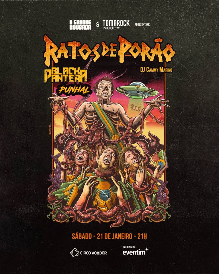 Depois dessa incrível apresentação, estava chegando a hora de vermos a tour de 40 anos de uma das maiores instituições do Punk/Hardcore do Brasil e ver o Ratos de Porão no Circo Voador é diferente do que qualquer outro local, outra casa, aquele local ali, junto do Ratos de Porão que, como o próprio João Gordo (vocalista) falou em dado momento, a banda toca ali desde 1983, ele toca com a banda ali desde 1985, então, temos uma simbiose muito grande entre público e banda e ao começar o show com uma música do disco novo, Necropolítica, isso não mata a simbiose, pra ser mais exato, como o disco foi extremamente bem recebido por todos, Alerta Antifascista é a bomba necessária para aquecer e trazer mais uma vez as rodas e os moshes de volta ao Circo Voador e vamos combinar que amigo, o Ratos de Porão tá matador, Gordo (vocal), Jão (guitarra), Juninho (baixo) e Boka (bateria) estão uma máquina de Hardcore/Punk e não param de destruir, é porrada atrás de porrada, clássico com clássico. As faixas do Necropolítica funcionam muito bem ao vivo e o show foi inacreditável, como sempre é um show dessa instituição. Eles tocaram tantas músicas de todas as fases da banda que o show foi simplesmente emblemático, um show com Aids, Pop, Repressão, Toma Trouxa, Crucificados pelo Sistema, Engrenagem, Expresso da Escravidão, Farsa Nacionalista, Amazônia Nunca Mais entre tantas outras, não preciso continuar falando que foi simplesmente uma apresentação foda!! Como sempre o Ratos de Porão entrega muito, é um show único, esse foi um jeito ímpar de começar esse ano de shows!!