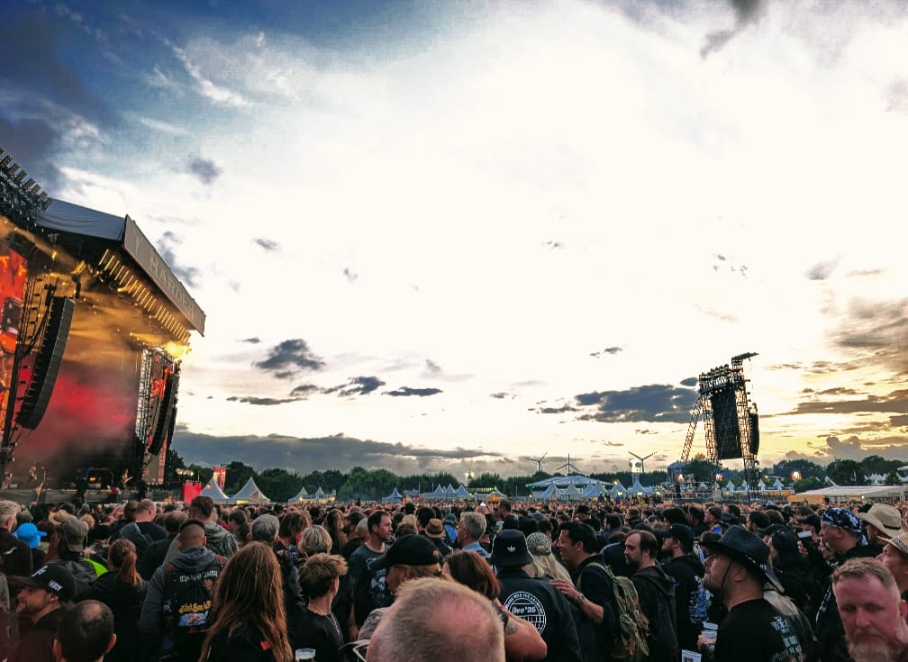 E então, chegou o momento histórico: a primeira vez do Guns N’ Roses no Wacken. A entrada foi anunciada de forma épica, com drones sincronizados iluminando o céu noturno e elevando a expectativa ao máximo. Quando Axl, Slash e Duff surgiram, a plateia explodiu. Foram 3 horas e 10 minutos de show, o mais longo da história do festival.