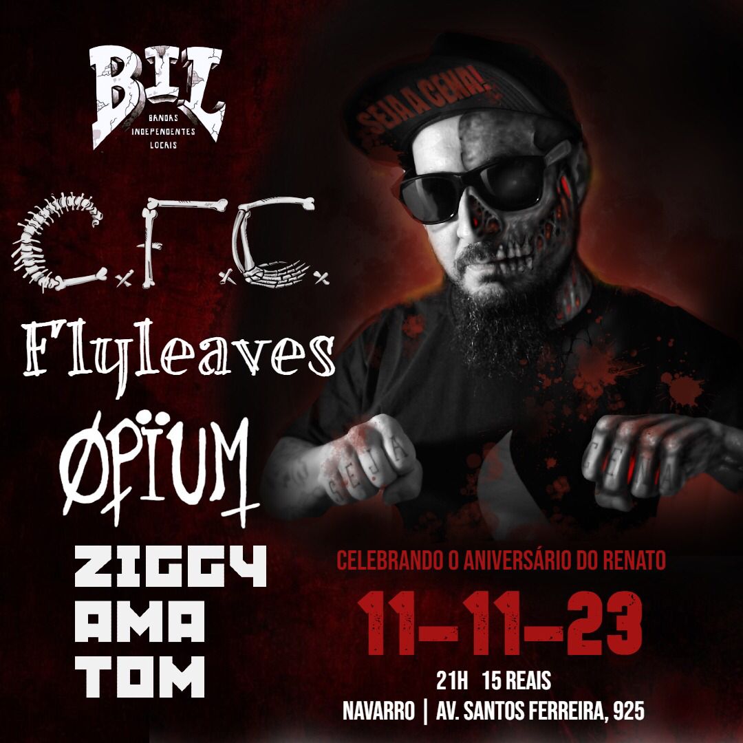 O evento, que será realizado neste sábado, dia 11 de novembro, está sendo organizado pela B.I.L. (Bandas Independentes Locais), coletivo que atua na cidade de Canoas promovendo shows e outras atividades desde 2005. Além do CxFxCx, o Navarro Cultural, localizado na Rua Santos Ferreira, 925, receberá ainda as bandas Flyleaves, Opium e Ziggy Ama Tom a partir das 21h, com ingressos custando R$ 15,00. Para acompanhar as ações do coletivo, acesse: https://www.instagram.com/bandasindependenteslocais.