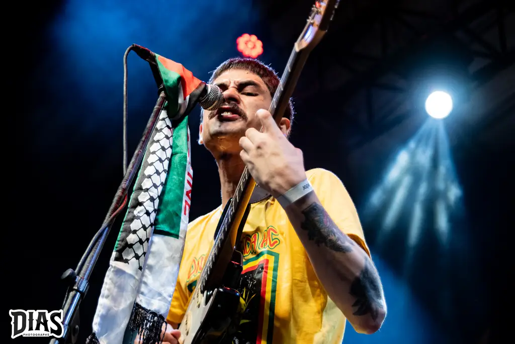 Mais um tempinho de troca de palco e amigo, o negócio agora iria ficar ainda mais agressivo, já que o Surra, o grande nome do Crossover Thrash Nacional, sobe em palco para passar rapidinho o som e já ostenta a bandeira da Palestina em palco, ou seja, não precisamos entrar na seara pois o recado, silenciosamente já tinha sido dado, mas quando eles começam o seu set, que em 1 hora e pouquinho, tocaram 22 músicas de letras ácidas, diretas e claras à situação política no qual o Brasil viveu e, infelizmente, sabemos que diversas letras do seu set, como Escorrendo pelo Ralo, Bom Dia Senhor, Parabéns aos Envolvidos, Ultraviolência, entre diversas outras, o Power Trio Santista levou o público presente à loucura, fazendo pela primeira (e única) vez que tivemos aquela infestação de pessoas subindo ao palco, agitando e pulando, os mosh pits foram ainda mais insanos durante o show do Surra, que seu som é perfeito para toda a movimentação no qual já estamos acostumados e com uma bela comunicação, a banda fez um showzaço, liberando o microfone até para que alguns fãs assumissem os vocais e cantarem as suas letras, com momentos super legais, um show incrível e com uma energia única, vale demais assistir essa bela banda e, depois do show, conversando com alguns, eu vou deixar aqui, temos no Surra, um dos grandes nomes para “subsitituir” o Ratos de Porão no Circo Voador.