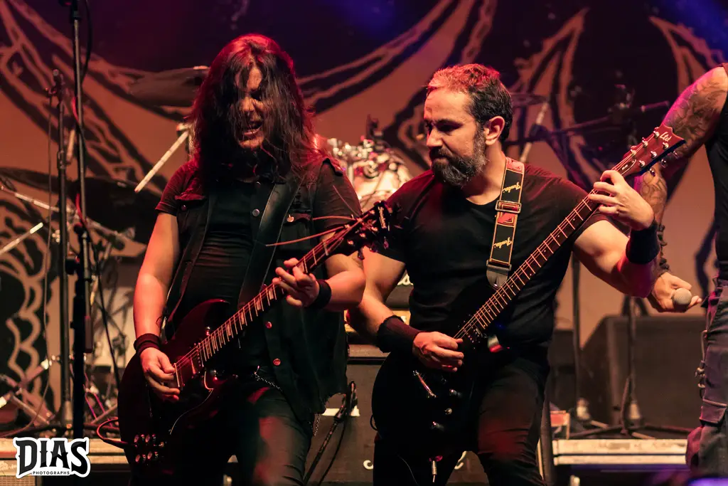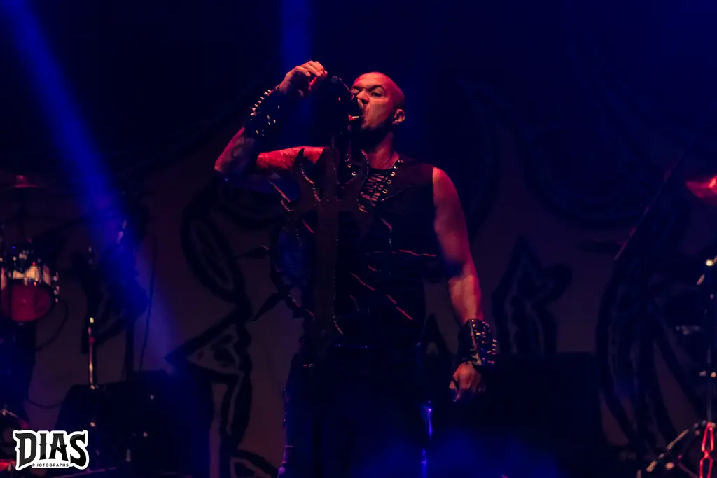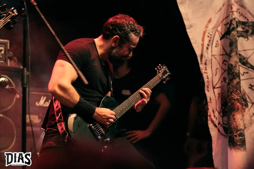 Depois de um tempinho de troca de palco, vejo os escudos de uma das instituições Cariocas do Black/Death Metal em palco, então iríamos ver o DarkTower em ação, banda que dispensa apresentações, Flávio Gonçalves (vocal), Rafael Morais e Nonu Pirozzi (guitarras), Rodolfo Ferreira (baixo) e na bateria, nessa sexta feira, o monstro Gabriel Bastos, que cobriu a vaga do baterista da banda, que infelizmente não pode tocar na sexta e, de acordo com a banda, em uma semana levantou um setlist matador e o tocou com uma perfeição única!! Pra quem, como eu, conhece e acompanha o DarkTower, sabe que eles não brincam em serviço e abrindo o show com The Carnal Splendour, eu já sabia que teríamos uma apresentação animal e não foi diferente, Dawn Of Darkened Times foi tocada, música do primeiro disco que, pra mim, é um dos clássicos do Underground Carioca. O recado do DarkTower é dado e God Above Nothing é tocada e esse recado é claro até pra quem curte a banda e está do lado errado da história, pois eles não seguem essa linha “obediente”, e depois dela, a faixa título do último disco, Obedientia foi executada e o show, mesmo curto (40 minutos de palco, mais ou menos), eles fecham com Human Like Fire e Blood Harvest, mostrando o porquê eles arrastam gente aonde anunciam show, que banda em palco, que belíssima apresentação.