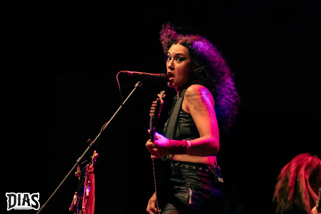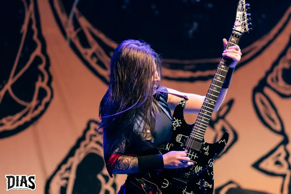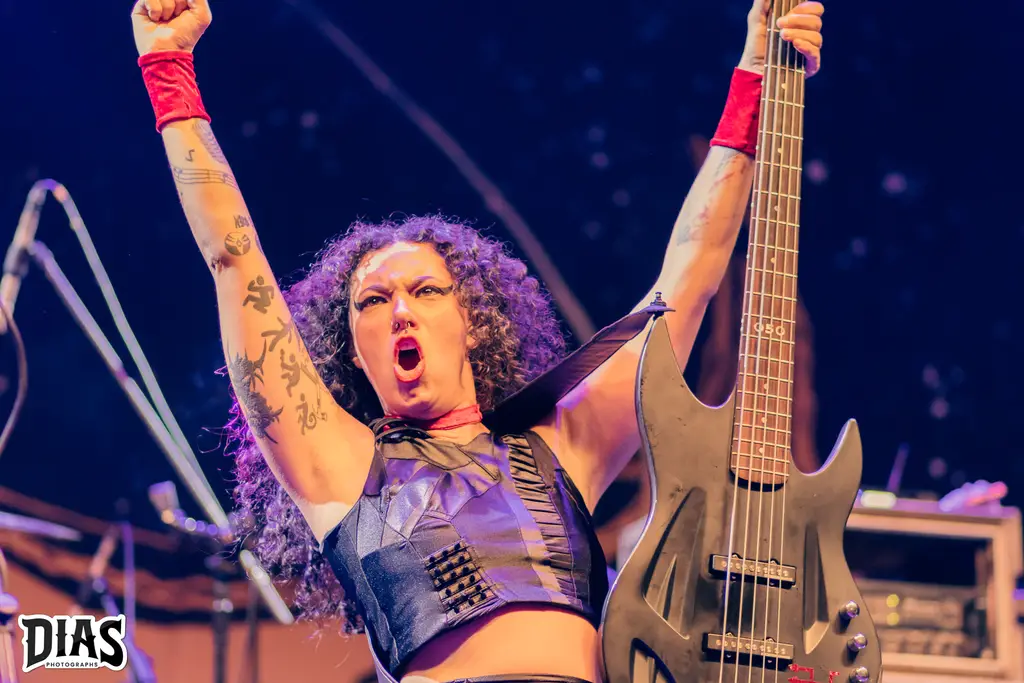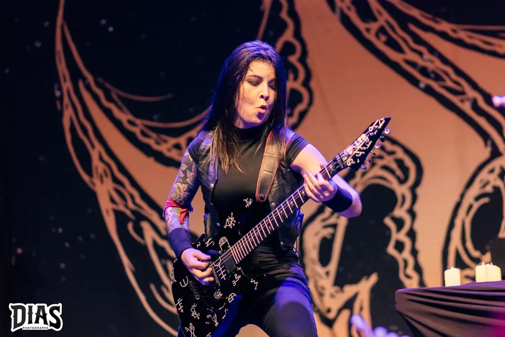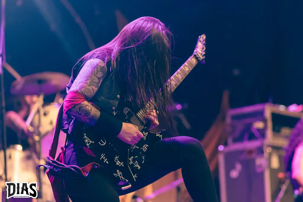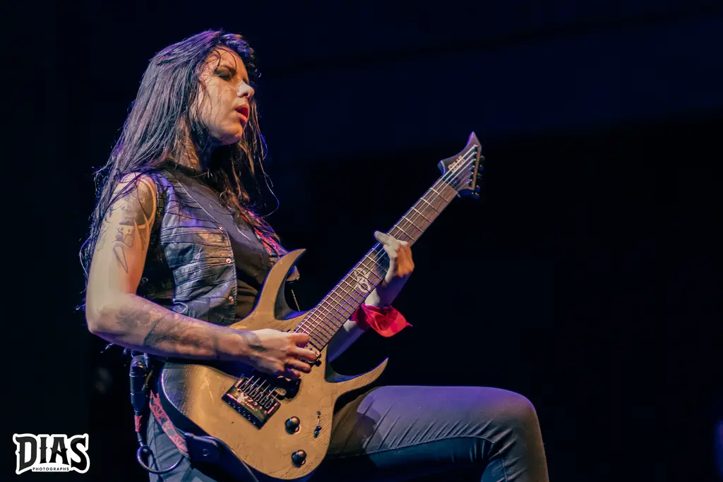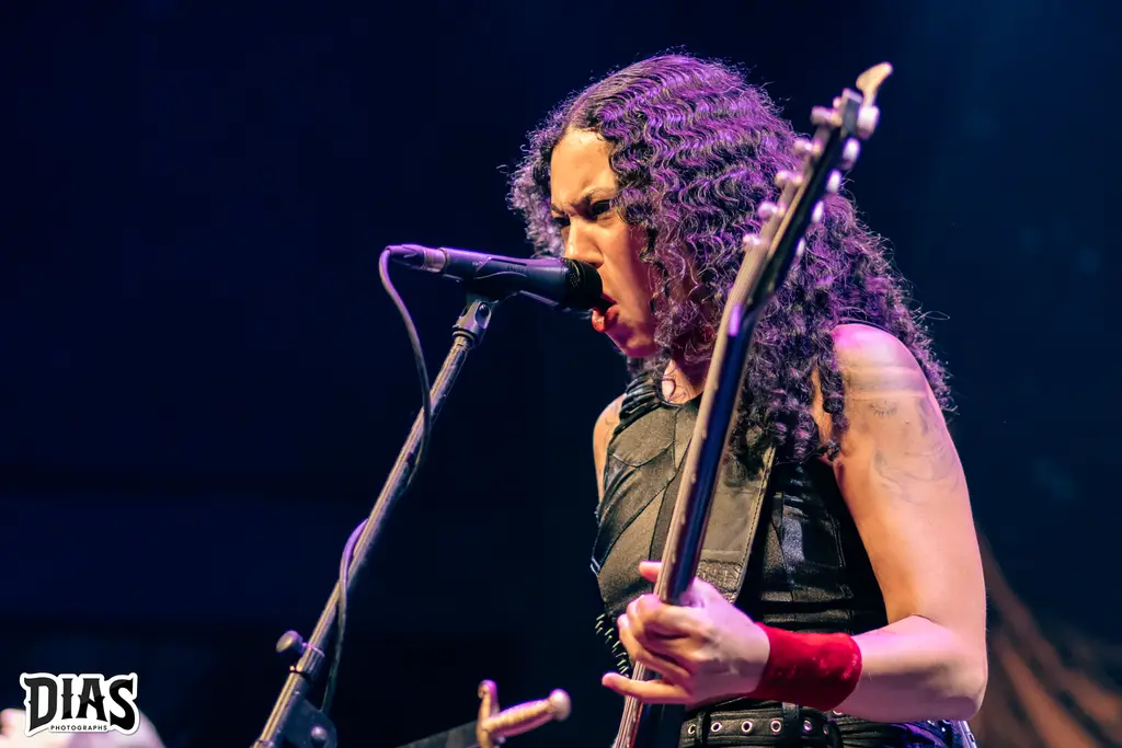 Agora chegou o momento, o grande nome da noite, a banda que acabou de nascer e estaria tocando, pela primeira vez no Rio de Janeiro e no palco do Circo Voador, realizando o sonho de uma das membras da banda, a Crypta, expoente Death Metal do Brasil, formada por Fernanda Lira (baixo e vocal), Jessica di Falchi e Tainá Bergamaschi (guitarras) e Luana Dametto (bateria) sobem ao palco para apresentar Shades Of Sorrow, novo disco da banda (resenha dele aqui) e já abriram o show com The Other Side Of Anger, que é um puta sonzaço e que funcionou muito bem ao vivo, logo depois Kali, do disco de estréia Echoes Of The Soul é executada e a banda começa a ganhar o seu público ainda mais e com o andamento do set, a galera se entregou por completo ao Death Metal da banda, que em palco (e fora dele também) desfila simpatia e um contato incrível com o público, Fernanda Lira e suas poses ímpares estavam com tudo, ela dançava e bangueava sempre, Jessica di Falchi não consegue parar de rir em palco, mostrando a felicidade dela, Taina tem aquela face mais fechada, mais séria, mas se diverte também em palco, como em um momento do show, no qual a música tinha uma longa passagem de baixo da Fernanda e Tainá e Jéssica correm pro meio do palco e fazem uma piada, jogando Jo Ken Po (Pedra, Papel, Tesoura) e a Luana Dametto é incrível, ela é um coração forte na banda, como bate forte e ao mesmo parece fazer tudo parecer fácil. Diversas canções do disco novo foram tocadas, como The Outsider, Lord Of Ruins, Trail Of Traitors, todas elas com respostas inflamadas da galera e o show delas foi incrível, pra encerrar, a maravilhosa e empolgante From The Ashes, que fez o encerramento ainda mais lindo e Fernanda ainda ficou um tempo em palco, atendendo diversos fãs, tirando foto e brincando com eles, um exemplo.