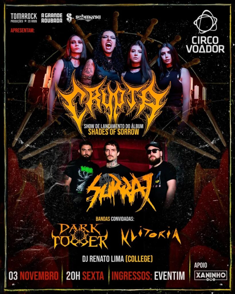 A Crypta é o nome do Death Metal Nacional sim e essas grandes mulheres, fortes e fodas estão com um material incrível, todas as músicas tocadas em palco foram simplesmente incríveis, a banda prova (mesmo sem precisar provar nada a ninguém) que será o nome a carregar a Bandeira do Metal Extremo Nacional por muitos anos ainda.
