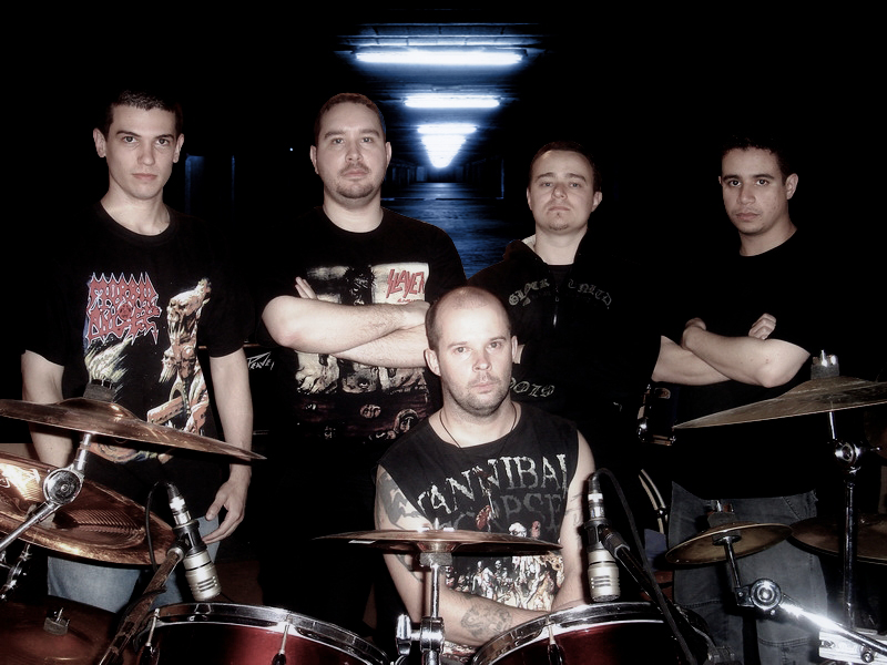 Na foto, da esquerda para a direita, formação que gravou o EP: Leonardo “Babyface”, Aparício “Dark” Neto, Vilmar “The Teacher” Gusberti, Jonas “Devil’s Son” Torres e Everson Krentz (na bateria).