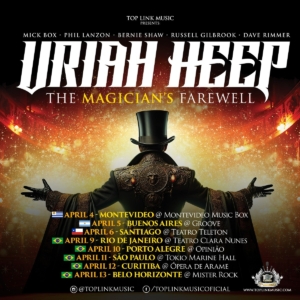 A Top Link Music anunciou em suas redes sociais a turnê de despedida da lendária banda britânica Uriah Heep pela América do Sul. Com mais de 50 anos de carreira e incontáveis clássicos do Rock em seu catálogo, um dos mais importantes nomes do rock mundial retorna ao continente para oito shows, no mês de abril de 2025.