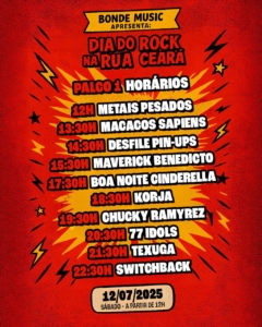 No dia 12 de julho de 2025 (sábado), a partir das 12h, a Rua Ceará, na Praça da Bandeira (RJ), receberá uma grande celebração cultural e musical com a realização do Dia do Rock na Rua Ceará. O evento gratuito integra as ações do projeto O Berço do Rock Alternativo Carioca, recém-reconhecido como Ponto de Cultura pela Rede Cultura Viva, do Ministério da Cultura.